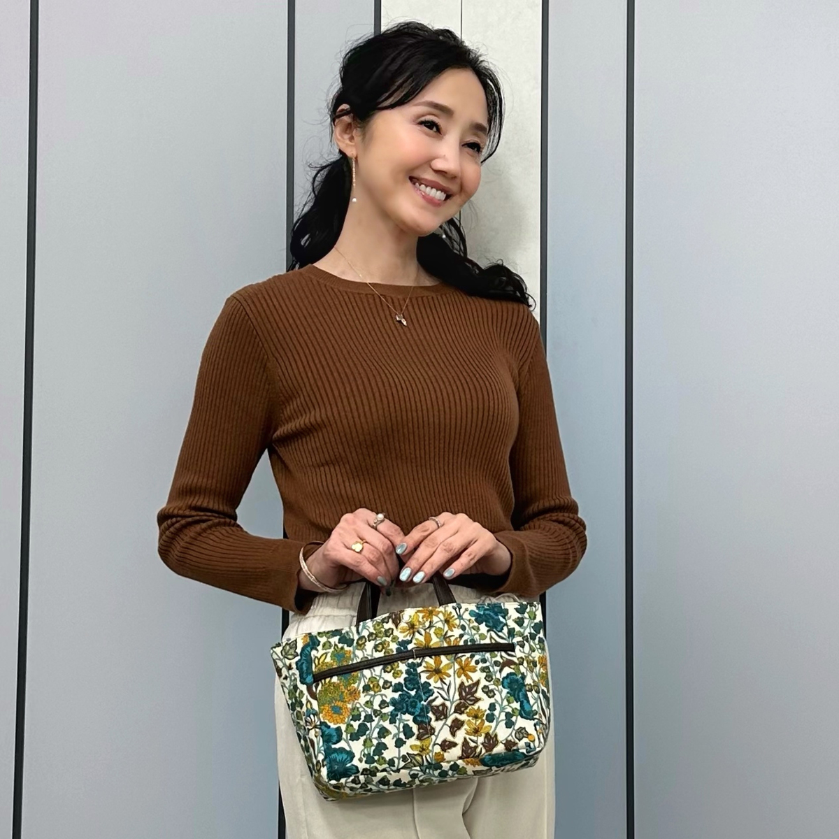 以前エドナ柄のブルーとカーキのお品を揃えて購入し、エドナが好きになりました。バッグインバッグも手帳ポーチも沢山持っていますが、家のいろんなところで多機能に使っているので迷わず購入。テレビ画面よりシックなお色がとても良かった!チャームバッグを付ける位置により、表情が変化して楽しいです。織香さんのトークも大好きなので、いつも録画しています。織香さん、これからも素敵なリバティを紹介して下さいませ。
