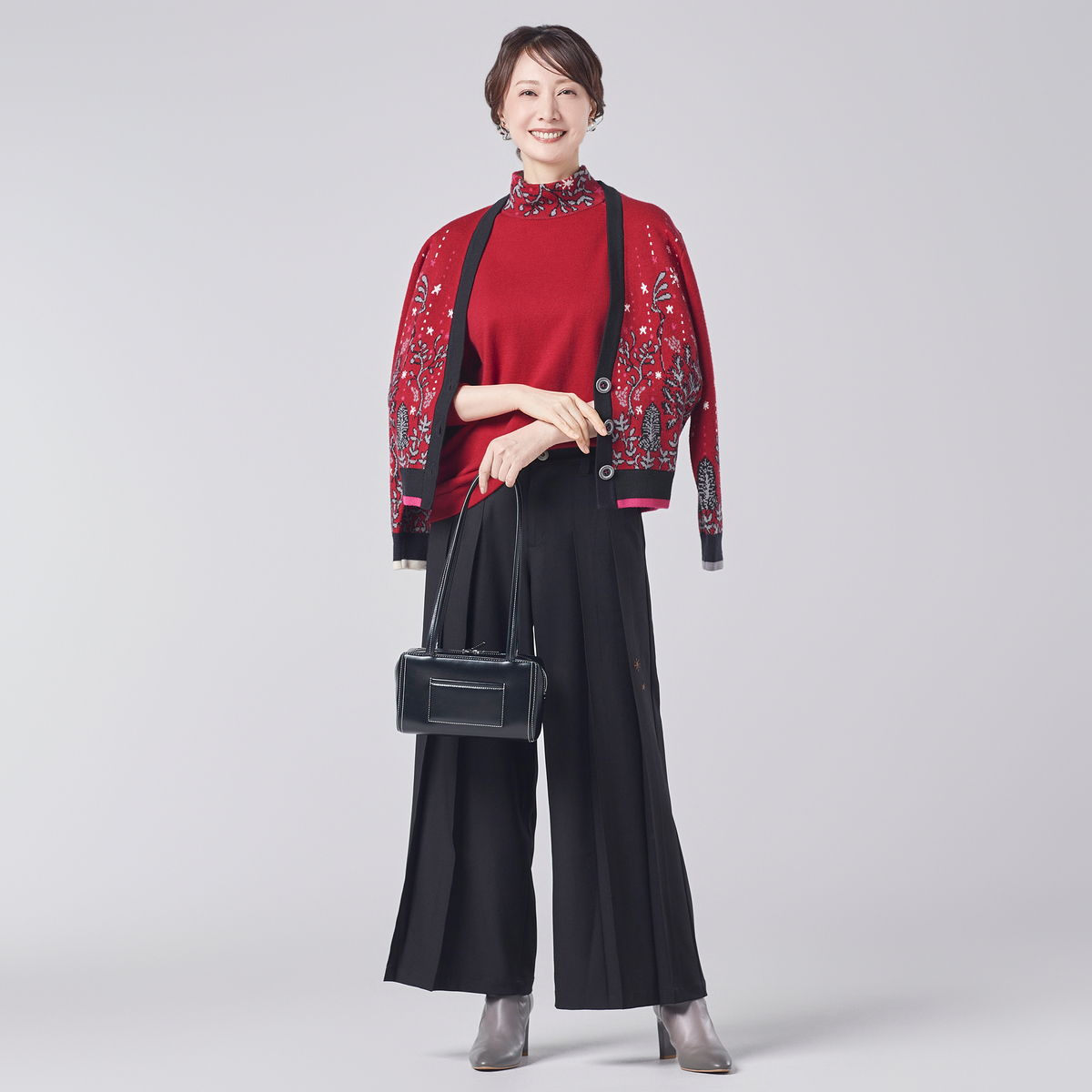 [商品寸法(ヌード)cm] サイズ バスト   着丈 裄丈 S:95(73〜81)  60  73 M:100(78〜86)  60  74 L:105(83〜91)  62  75 LL:111(89〜97)  62  76.5 3L:117(95〜103) 62  78 [素材] レーヨン45% ポリエステル35% ナイロン20% [お手入れ] 手洗い可 [注意事項] ※商品寸法の誤差は多少発生します。ご了承下さい ※淡色製品には蛍光増白剤入り洗剤を使用しないで下さい ※洗濯後はすぐに脱水し、形を整えて干して下さい。長時間、水につけたままにしないで下さい ※洗濯・クリーニングの際、色落ちすることがありますので他の物と分けて洗って下さい ※ドライクリーニングの際は洗濯ネットを使用して下さい ※濃色製品は着用中の摩擦により色移りすることがあります。また、雨や汗等で濡れた状態で着用すると色移りすることがあります。その際はお早めに洗濯をして下さい ※素材の特性上、着用や洗濯・クリーニング時の摩擦により毛羽立ち、毛玉が発生します。その際はお早めに毛玉取り器等で手入れをして下さい ※アイロン時にはあて布を使用して下さい ※装飾部分にはアイロンを当てないで下さい ※洗濯機の手洗いモードで洗濯する際は、洗濯ネットを必ず使用して下さい ※この製品は、光により退色しやすいので太陽光や蛍光灯等が長時間当たる所で保管しないで下さい ※着用時にベルトやバッグ、周囲の壁など、表面の粗いものとの摩擦や引っかかりに注意して下さい 【中国製】