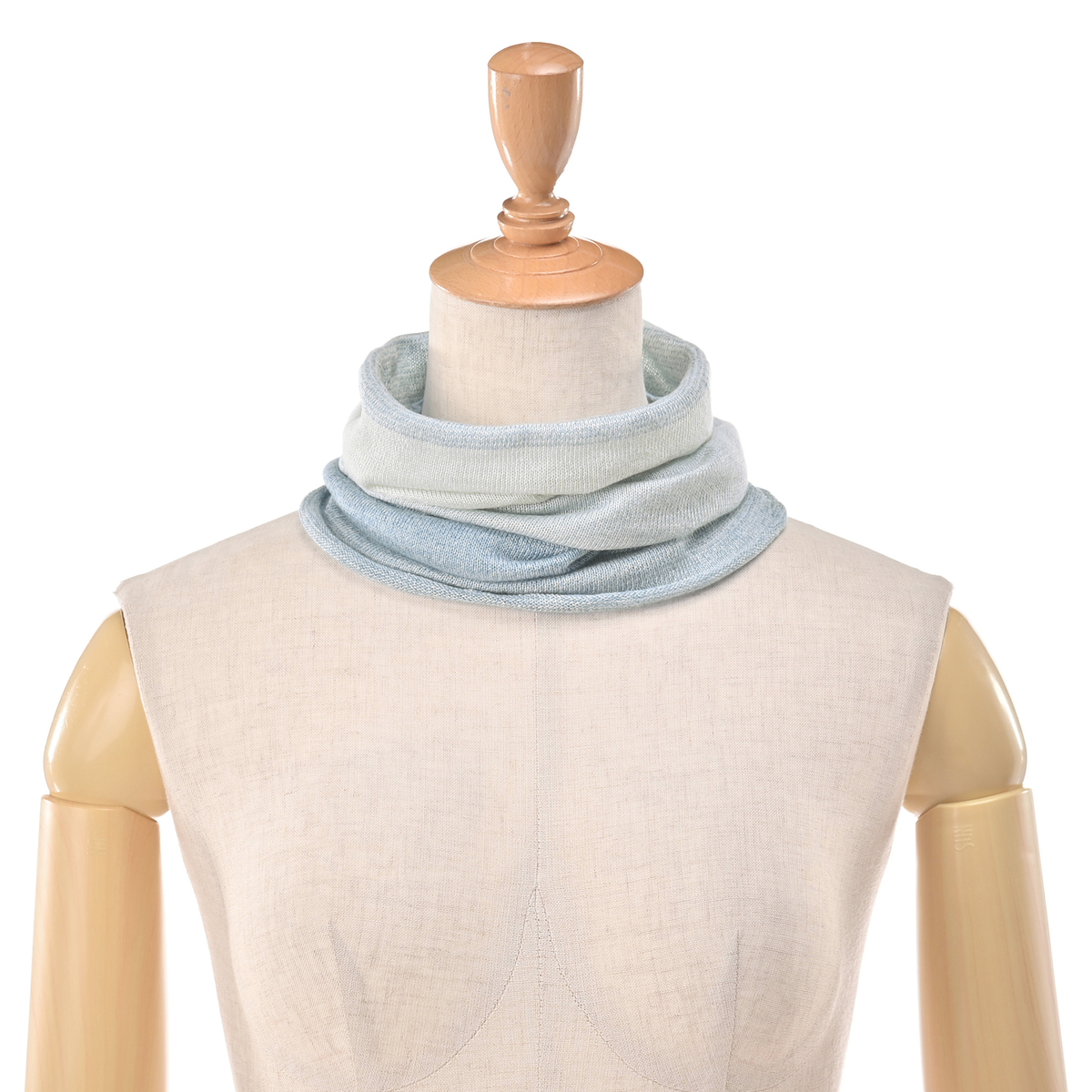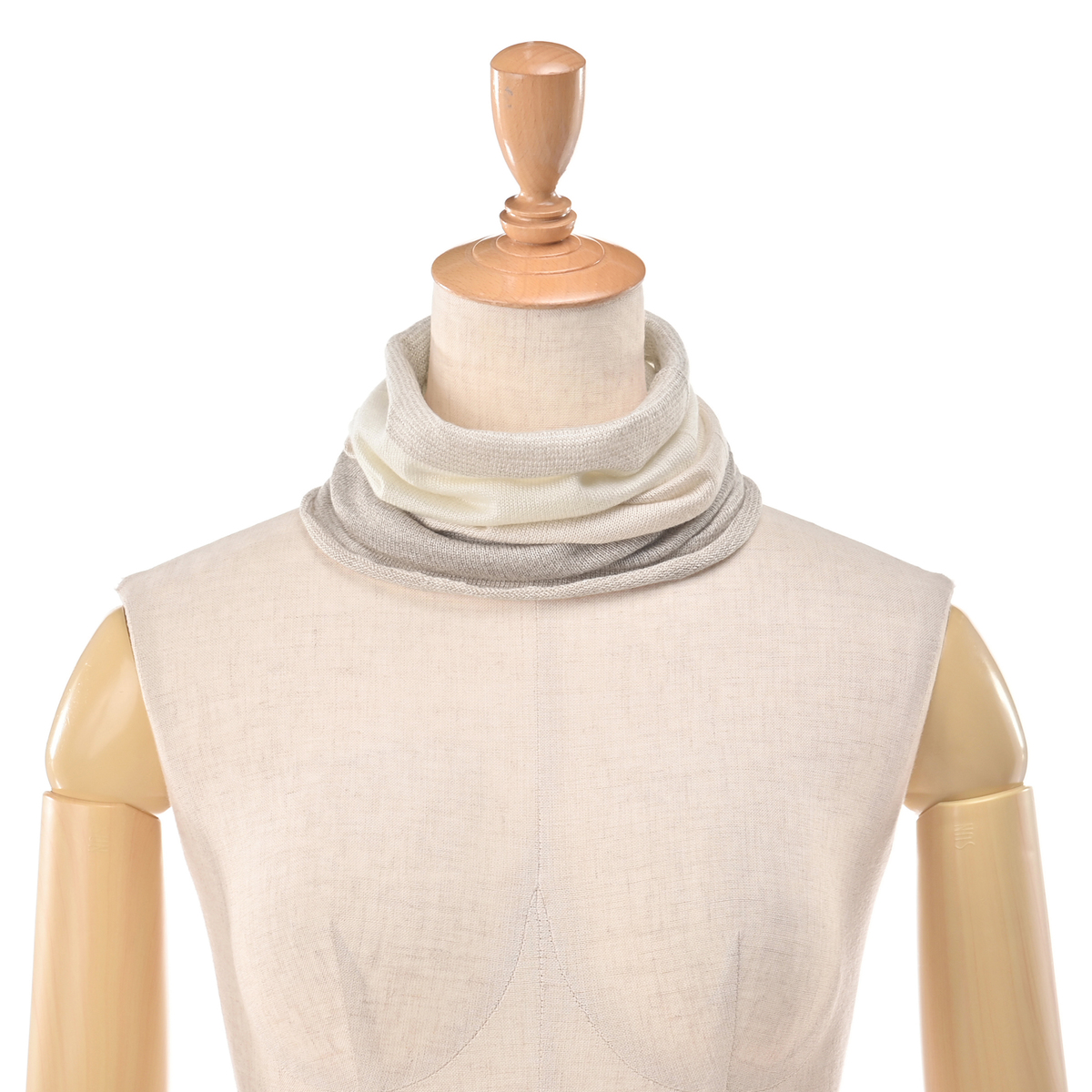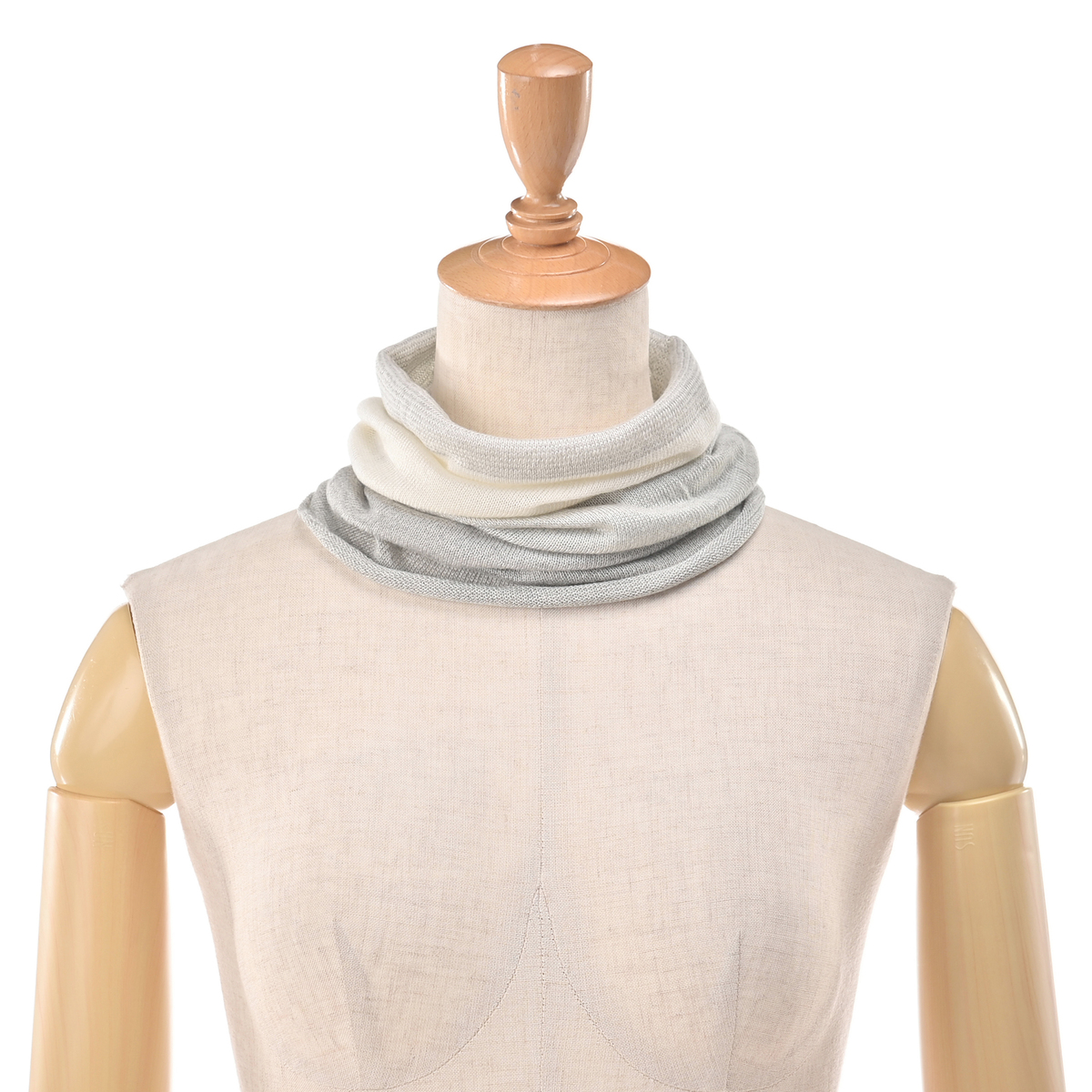 シルク100%素材を使用した、滑らかな肌触りのネックウォーマー。ホールガーメントの編み機で編み立て、縫い目が無く快適な着け心地です