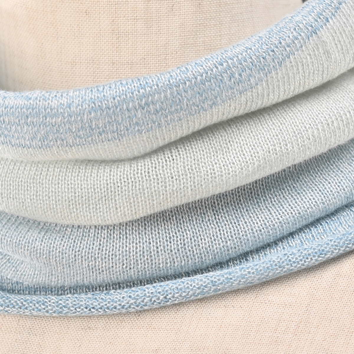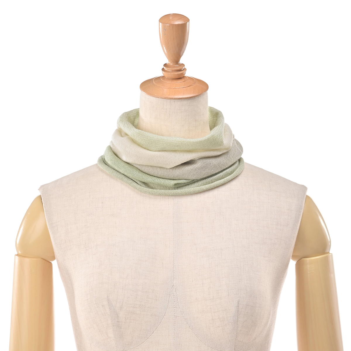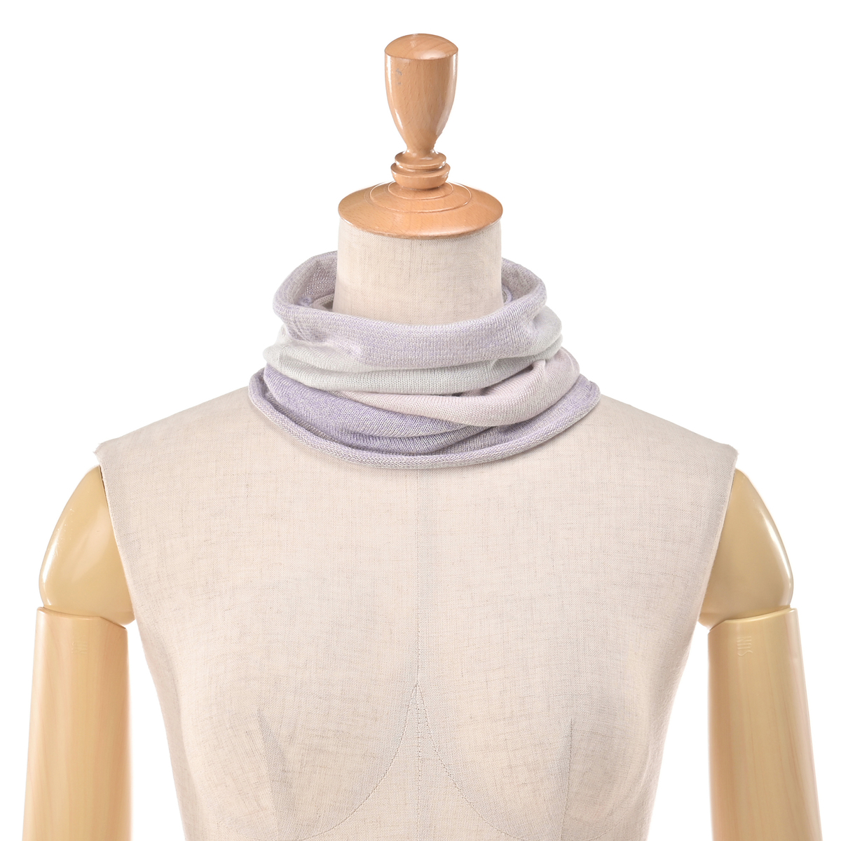 シルク100%素材を使用した、滑らかな肌触りのネックウォーマー。ホールガーメントの編み機で編み立て、縫い目が無く快適な着け心地です