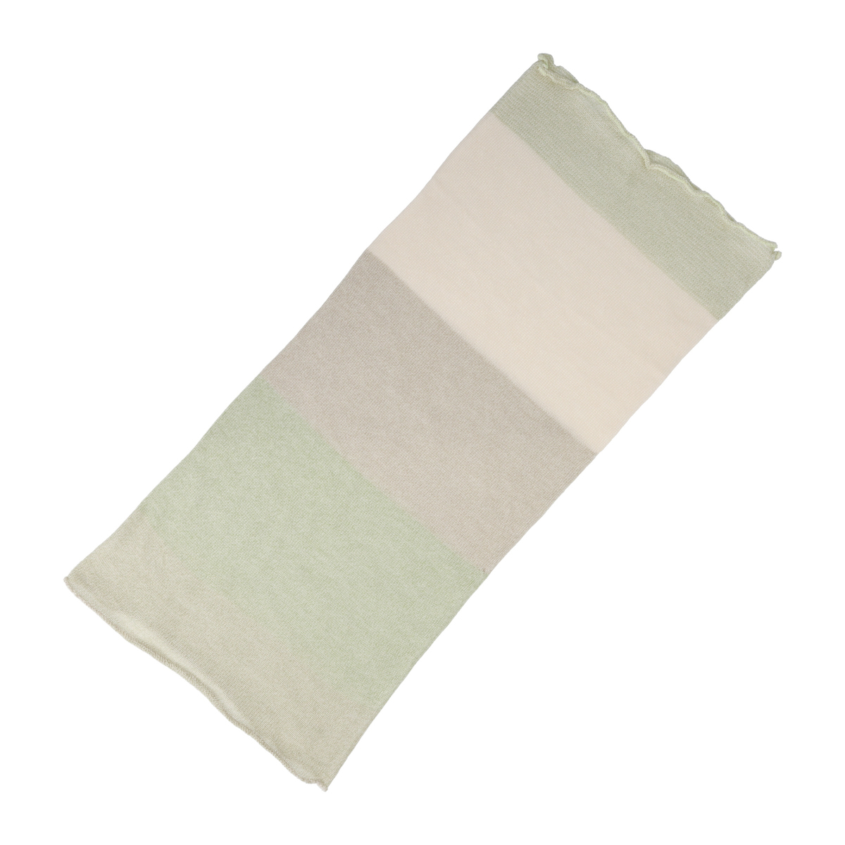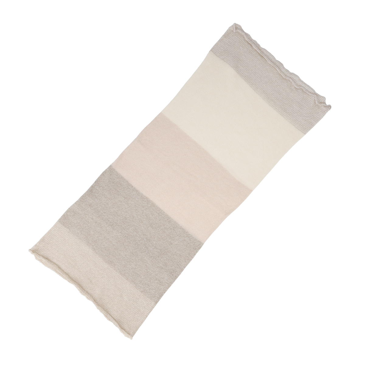 3色とミックスボーダーを切替え、洗練されたデザインに仕上げました。撚糸の段階でアイボリーの起毛糸をミックスしているため、全体に杢調の上品な色合いが生まれています