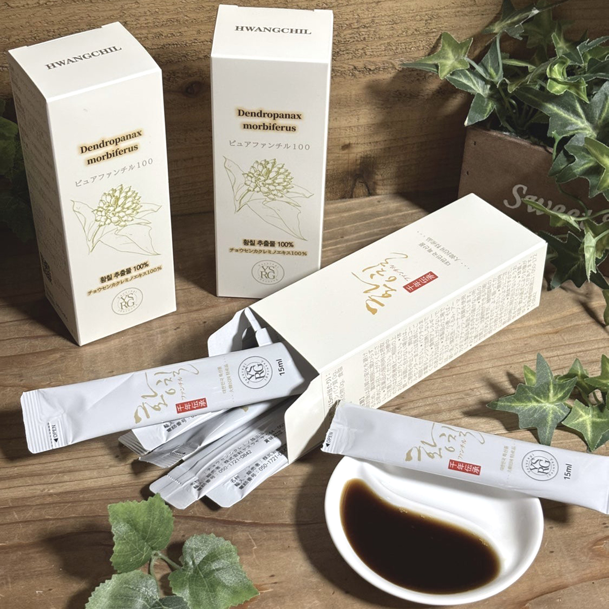 濃厚に濃縮された抽出液。そのままでも飲用できますが、濃く感じられましたら1スティックに対して100mlの水又はお湯で希釈してお召し上がりください。蜂蜜や砂糖を入れると飲みやすくなります