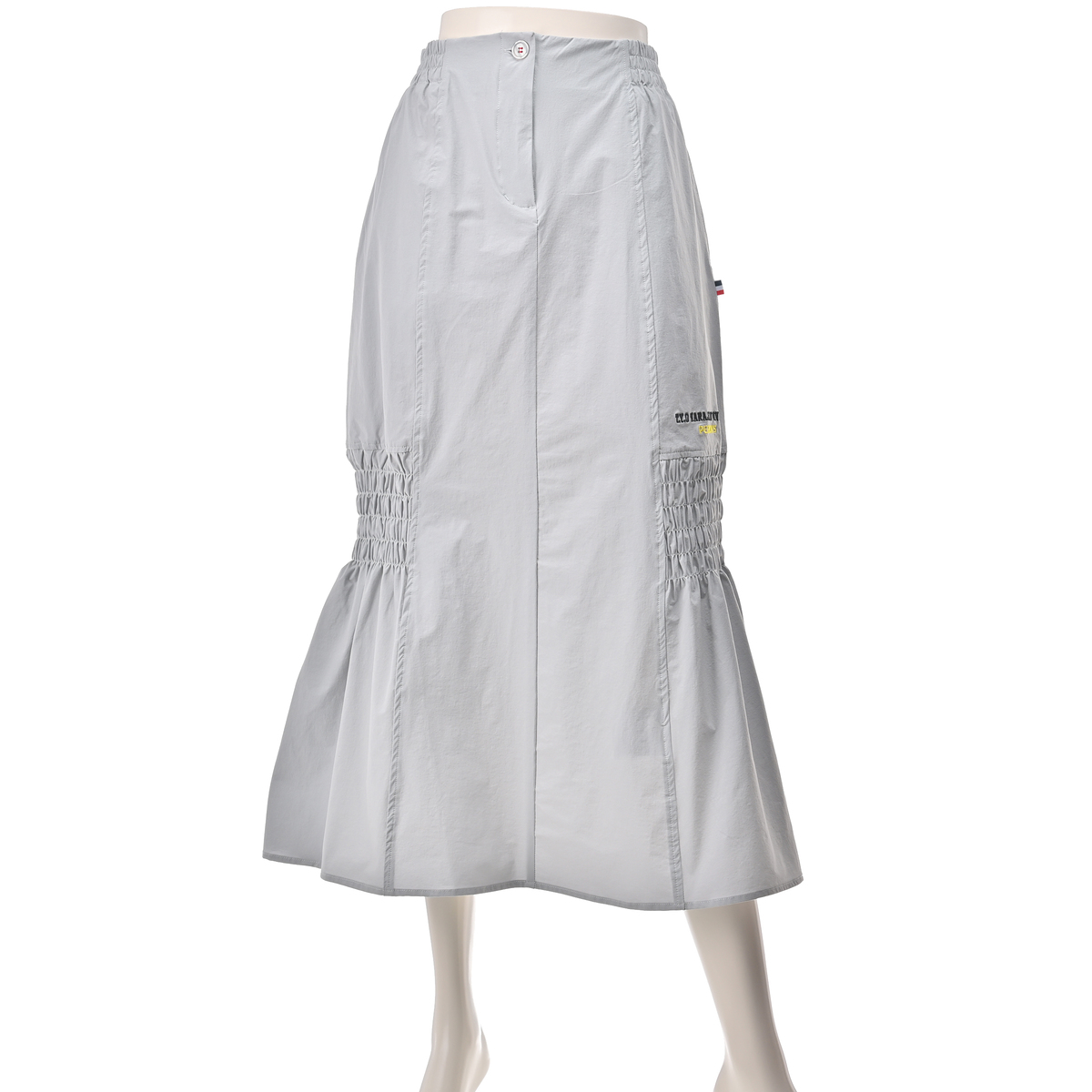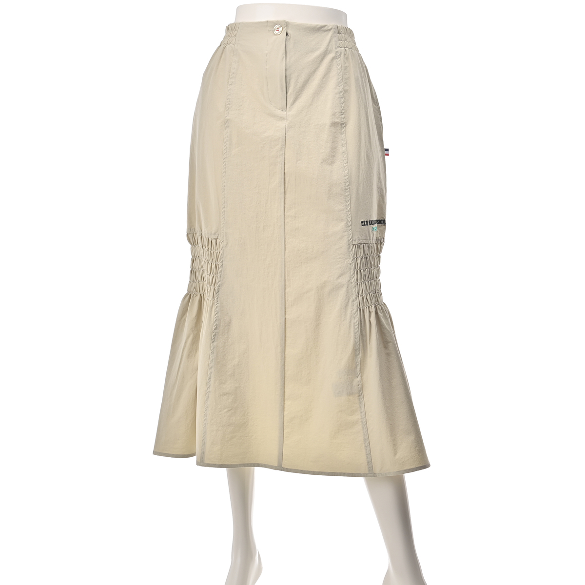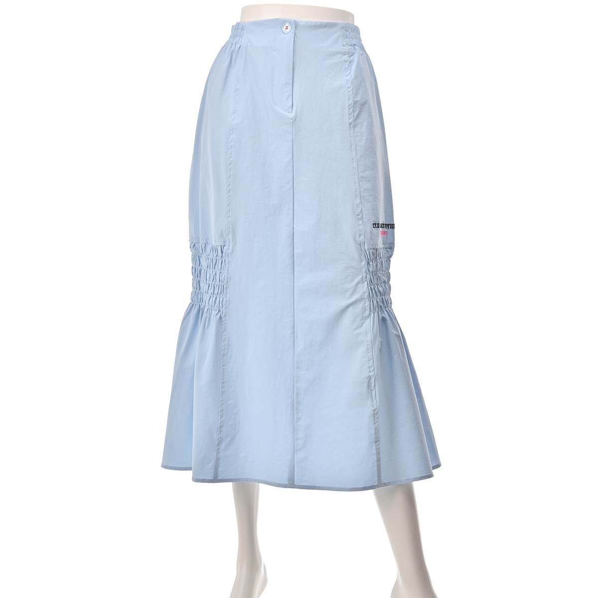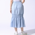 マーメイドラインが上品なロングスカートです。程よくゆとりのある穿き心地ながら、縦のラインですっきりと演出。裾に向かって広がるフレアの切り替えとシャーリングが、さりげなく個性をプラスします