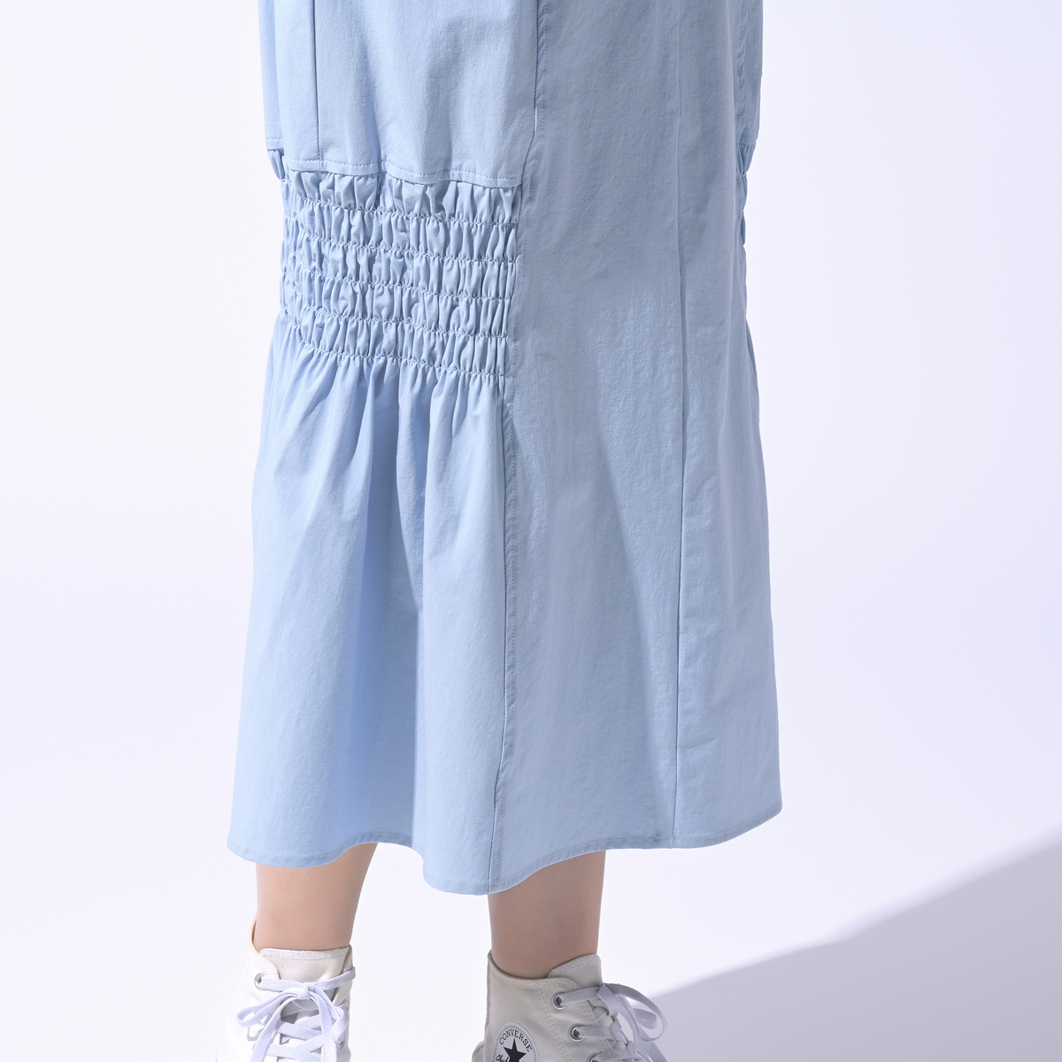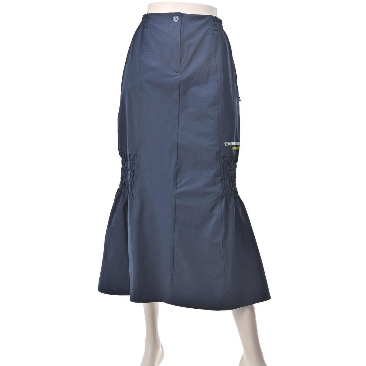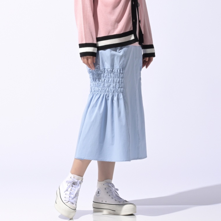 マーメイドラインが上品なロングスカートです。程よくゆとりのある穿き心地ながら、縦のラインですっきりと演出。裾に向かって広がるフレアの切り替えとシャーリングが、さりげなく個性をプラスします