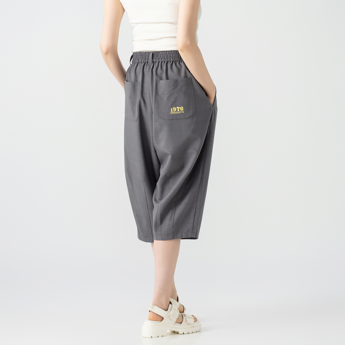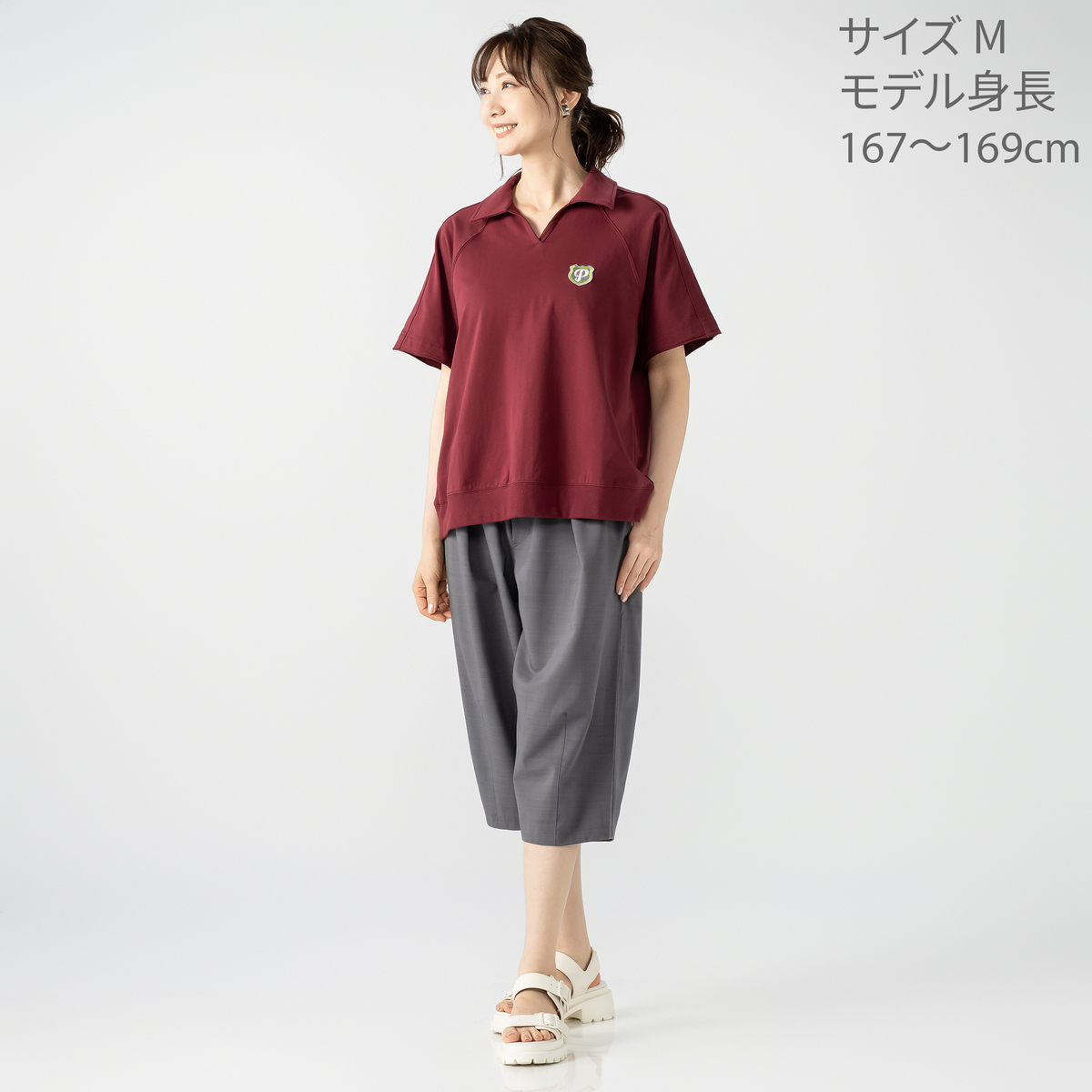 ゆったりとした穿き心地と、裾に向かって細くなる美しい逆三角形ラインが特徴の、ミモレ丈キャットパンツ。股上部分にしっかりと分量感があり、ふくらはぎ中央までの丈感で、涼やかで軽快な足元を演出します。カジュアルな外出やちょっとしたお出かけに、PERSONSらしく大人可愛いエッセンスをお楽しみ下さい