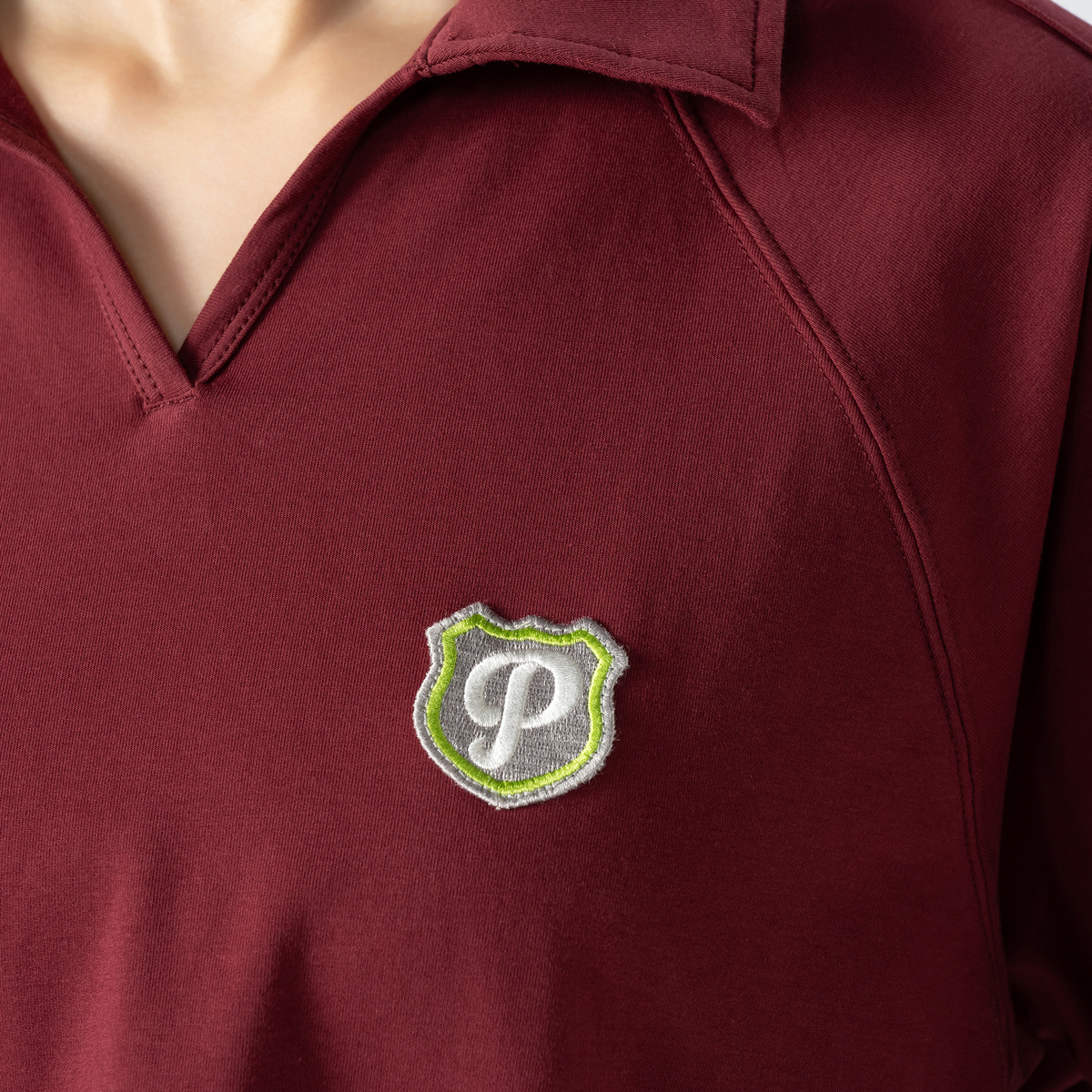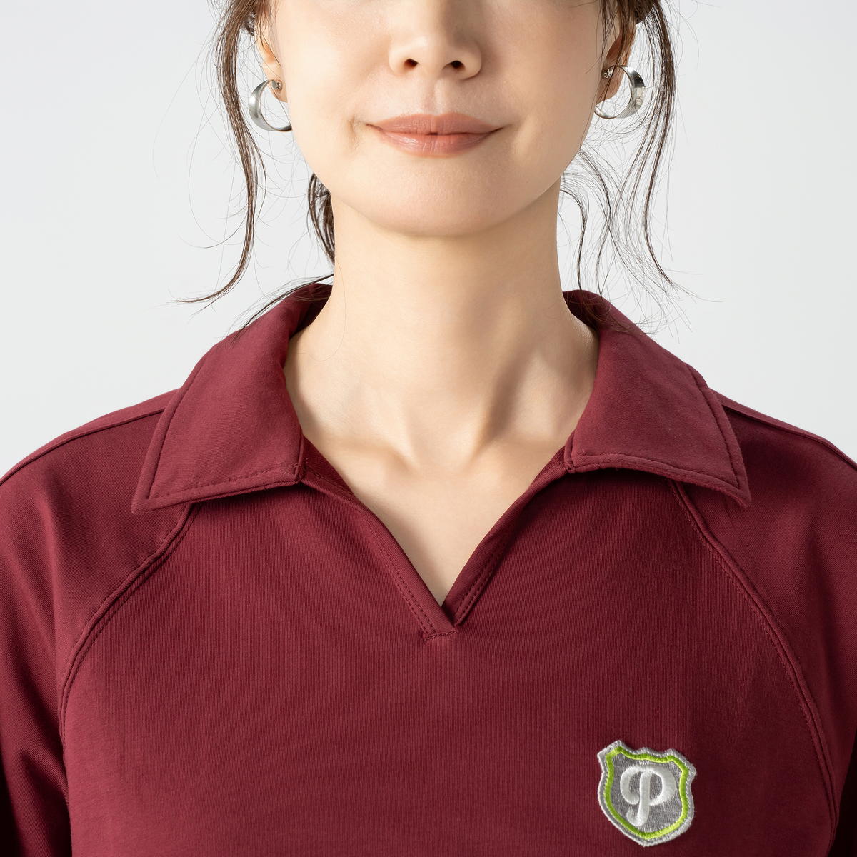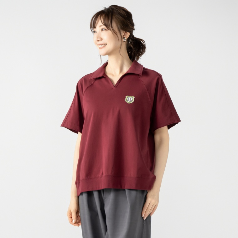 スキッパー衿のラグラントップス。ゆったりしたシルエットでリラックス感のある着心地です