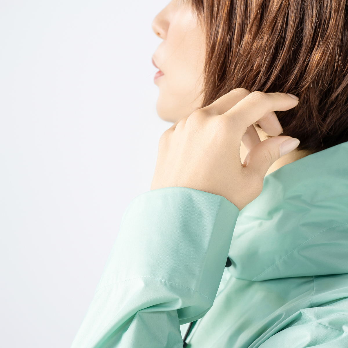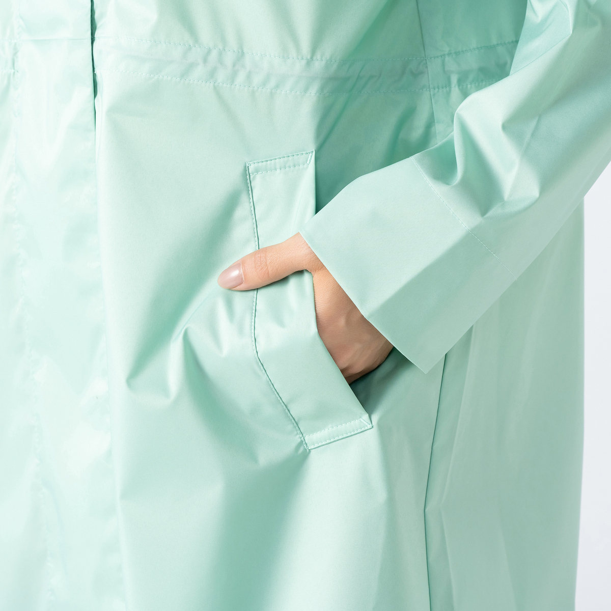 ベルグテック素材を使用することで湿気がこもりにくく、日常使いに耐えうる撥水性も兼ね備えたレインウエア*。耐水圧10000mmで雨や水滴を通しにくく、デイリーにお使いいただけます