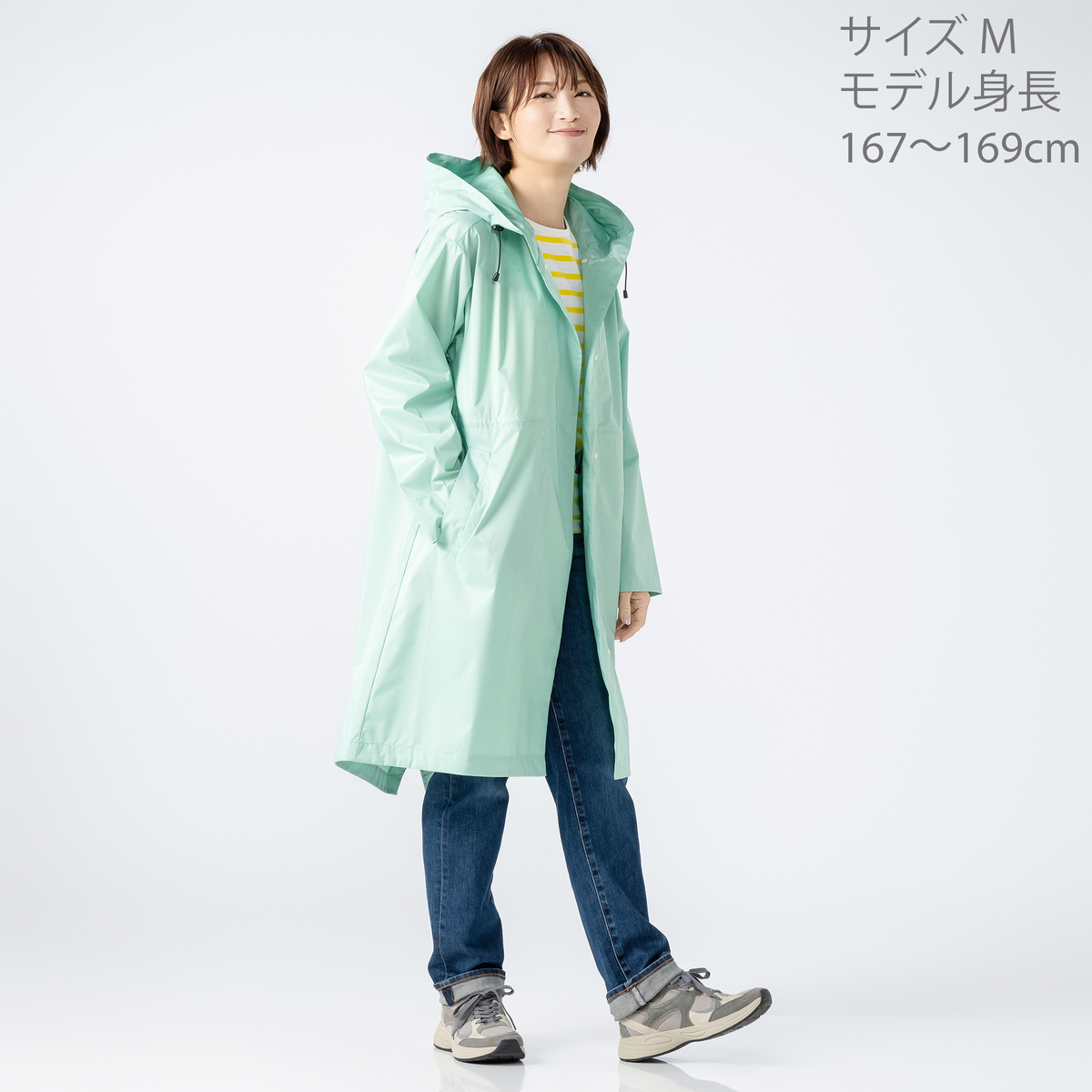[商品寸法(ヌード)cm] サイズ バスト 着丈 裄丈 S:107(78〜82) 91 78 M:110(81〜85) 95 80 L:113(84〜88) 99 82 [素材] ポリエステル 100% (裏面ポリウレタンコーティング) [お手入れ] 手洗い可 [付属品] 収納袋 [注意事項] ※商品寸法の誤差は多少発生します。ご了承下さい ※この製品は傘の併用を前提に設計をしておりますので、縫合部に防水性はありません ※アイロンはあて布を使用して下さい ※濡れたまま放置しないで下さい ※色物と白物は一緒に洗わないで下さい ※再帰反射部分は、長時間のご使用やご使用方法によ り、鮮明さが失われたり、はがれ、ひびわれを起こす ことがあります ※プリント、マークなどの加工及び付属品のある部分にアイロンを当てないで下さい ※はっ水効果を保つ為 すすぎを充分行って下さい ※はっ水効果が低下した場合は、乾燥後、絵表示に従いアイロン仕上げをして下さい ※この製品は傘の併用を前提に設計をしていますので、縫合部に防水性はありません ※ポリウレタンの加工面は、使用しなくても2年〜5年で劣化が始まることがあります ※高温、多湿、また日光が直接当たる場所では保管しないで下さい ※加工面同士が接触しないようハンガー吊りをお勧めします ※汗・水で濡れたまま放置しないで下さい 【中国製】