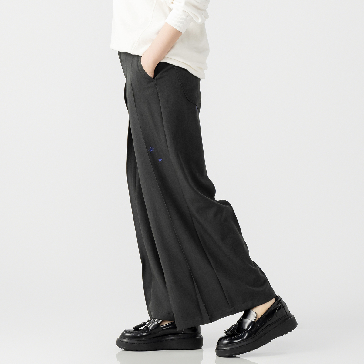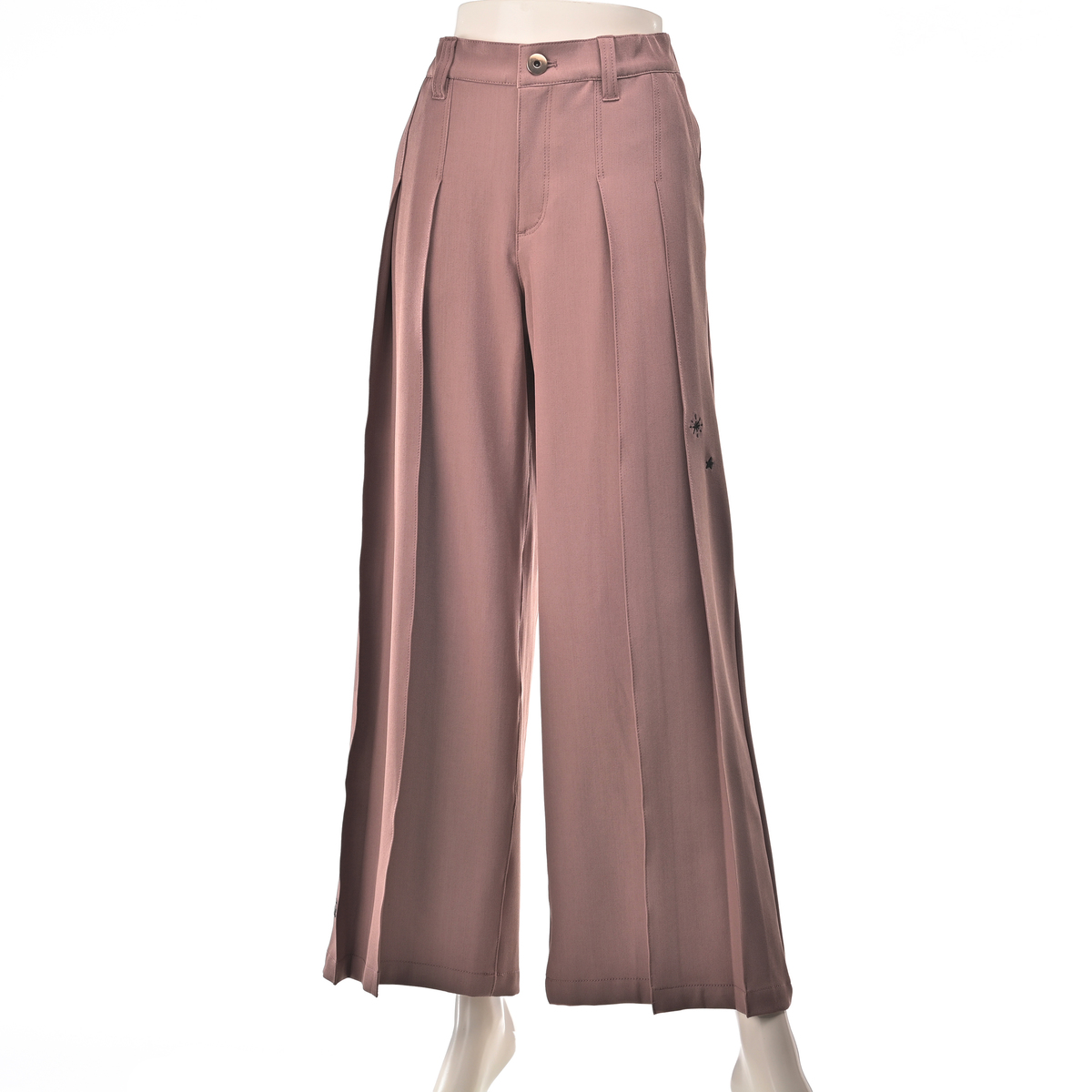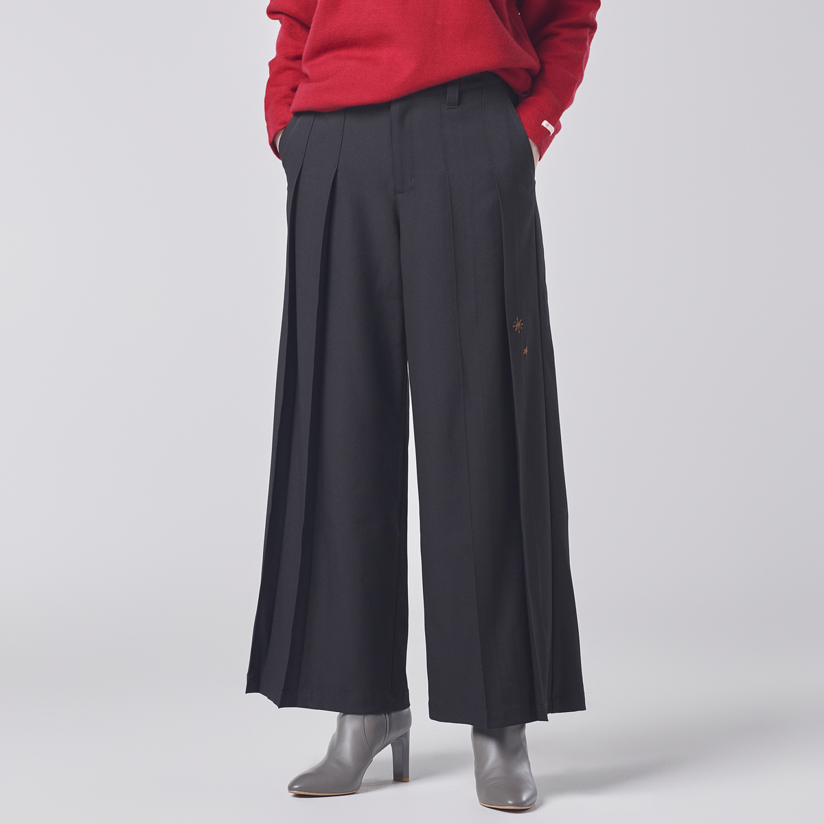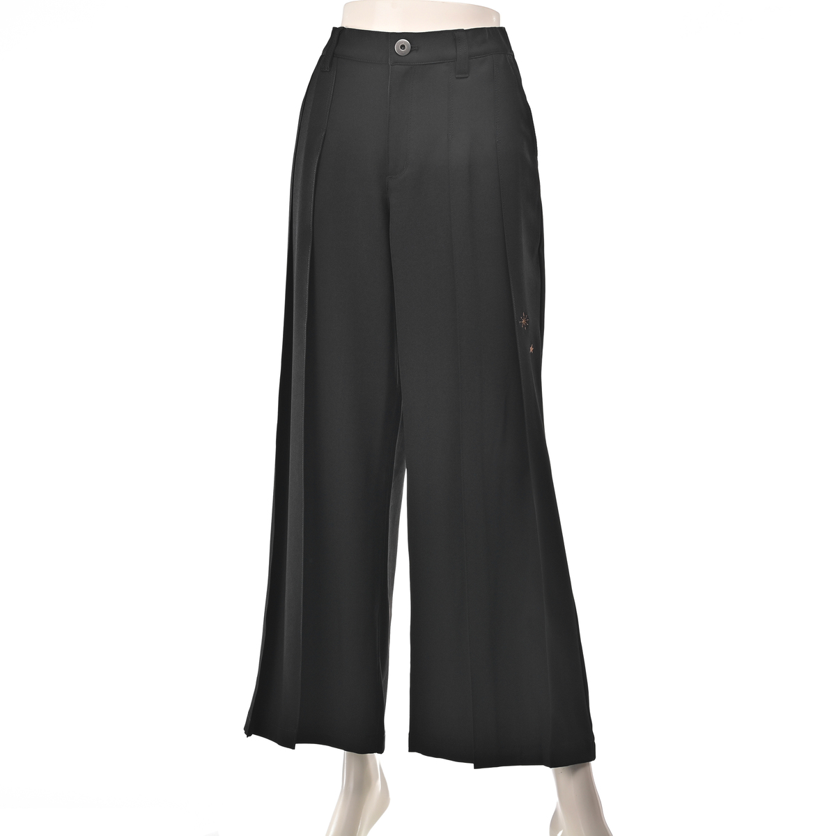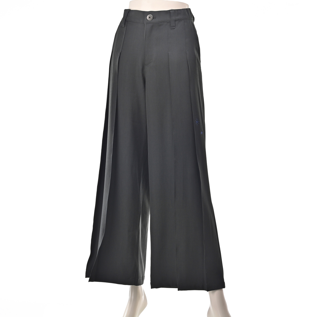 プリーツでワイドパンツステキだなと思い悩みに悩みポチッとな。今回、腰張さんの為にパターンを変えてお作りしたと穂貴さん。確かにデザインはステキだし、腰張りがさらにプリーツで強調されそうな気もしなくはない。足も綺麗に見えるかな、と思いました。が、プリーツがきちんとプラスせれておらず綺麗に履けなかったです。洗濯してアイロンかけるかどうか、元に戻るかな、とかそれも悩みに悩み。。。 オペレーターさんに相談して返品することにしました。星の刺繍はまだ良しとして裾のブランドロゴはいらなかったかもしれません。 残念です。