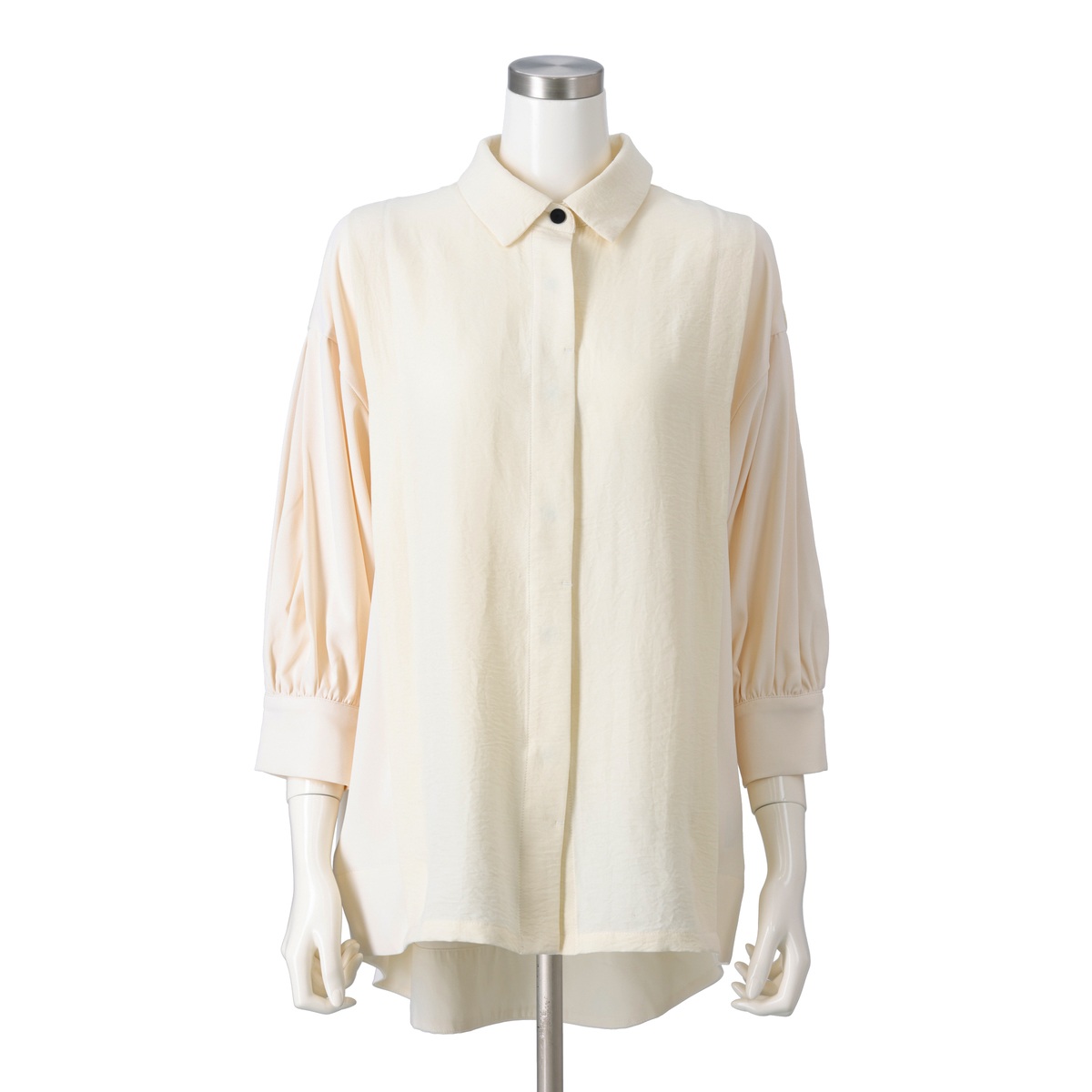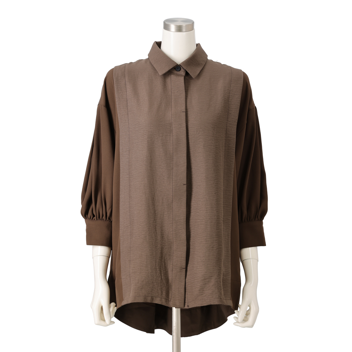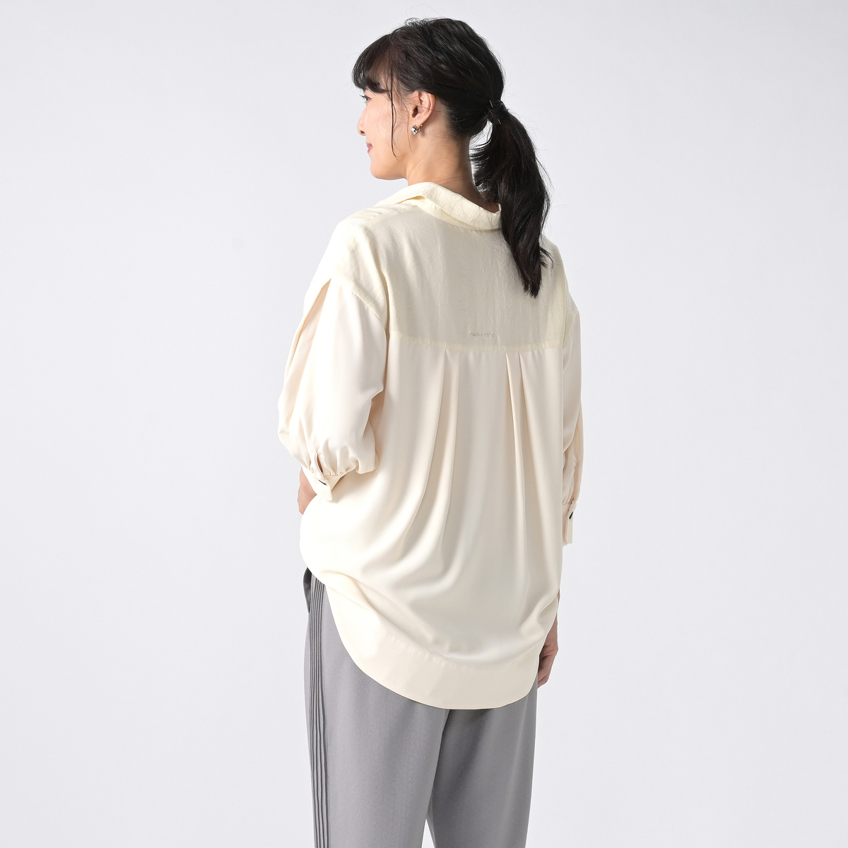 ヴィンテージツイルとジョーゼットを組合せたボクシーブラウス。シワ感のある中肉素材ときれいめな表面感のジョーゼットが立体感を生み出し、上品な印象で着こなせます