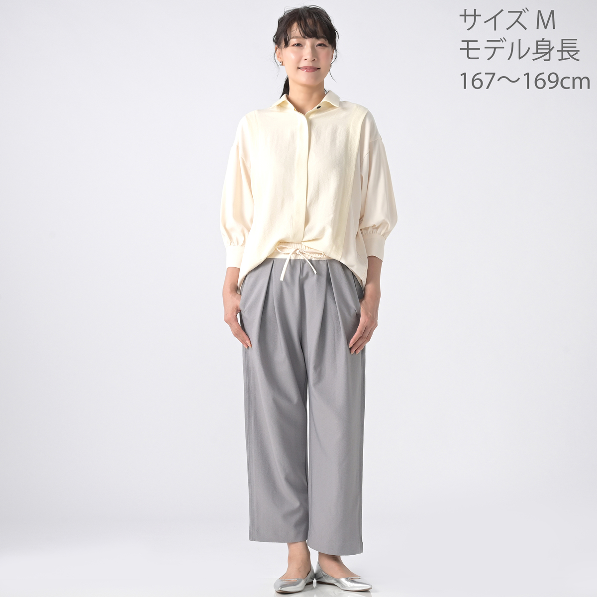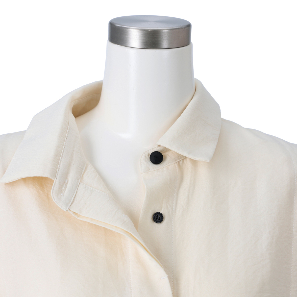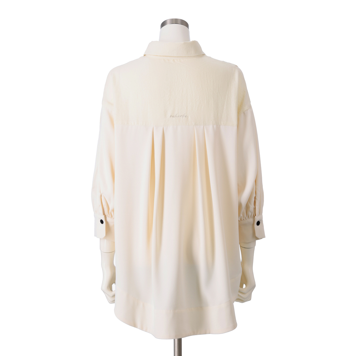 ヴィンテージツイルとジョーゼットを組合せたボクシーブラウス。シワ感のある中肉素材ときれいめな表面感のジョーゼットが立体感を生み出し、上品な印象で着こなせます