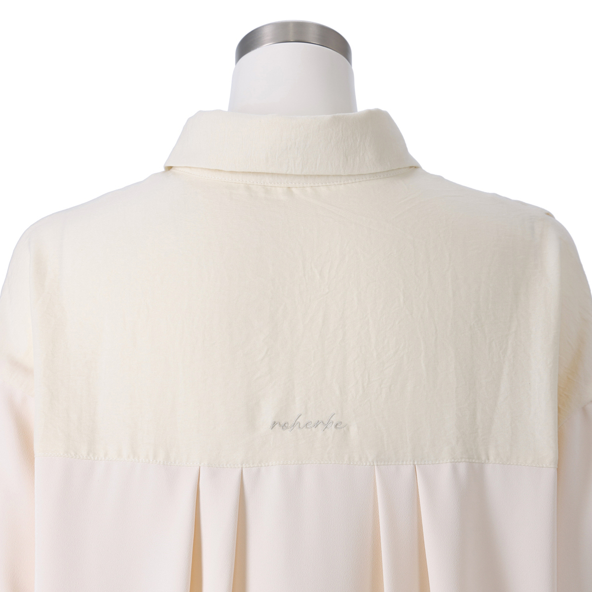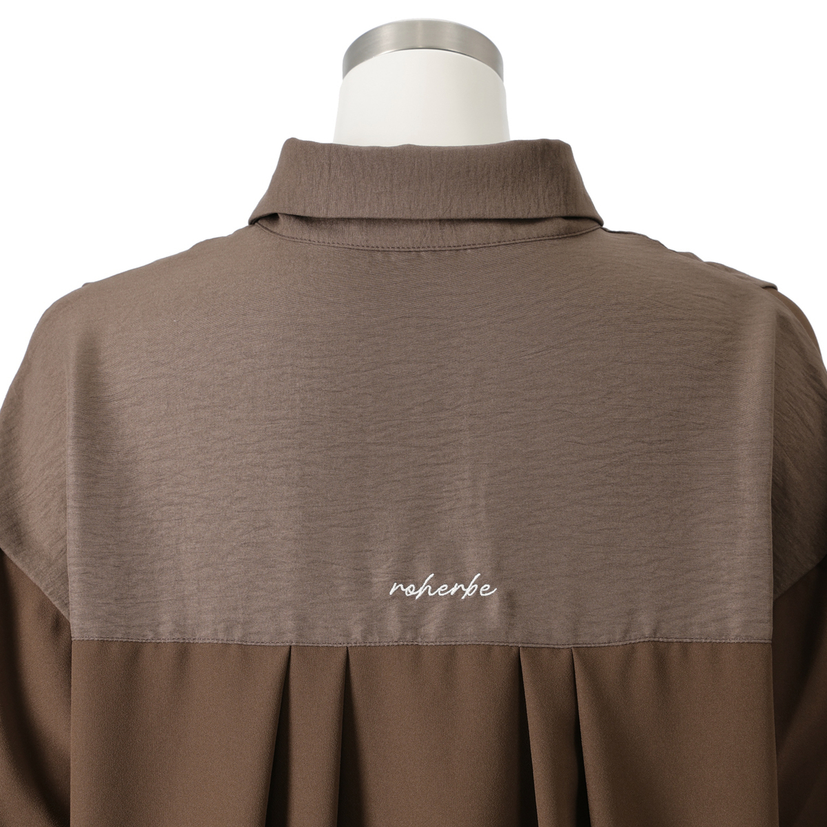 シャツタイプなので一枚で着るのはもちろん、ジレを重ねたり、羽織りとしても活躍。後ろ中心に施したROHERBEのロゴ刺繍がさりげないポイントになっています