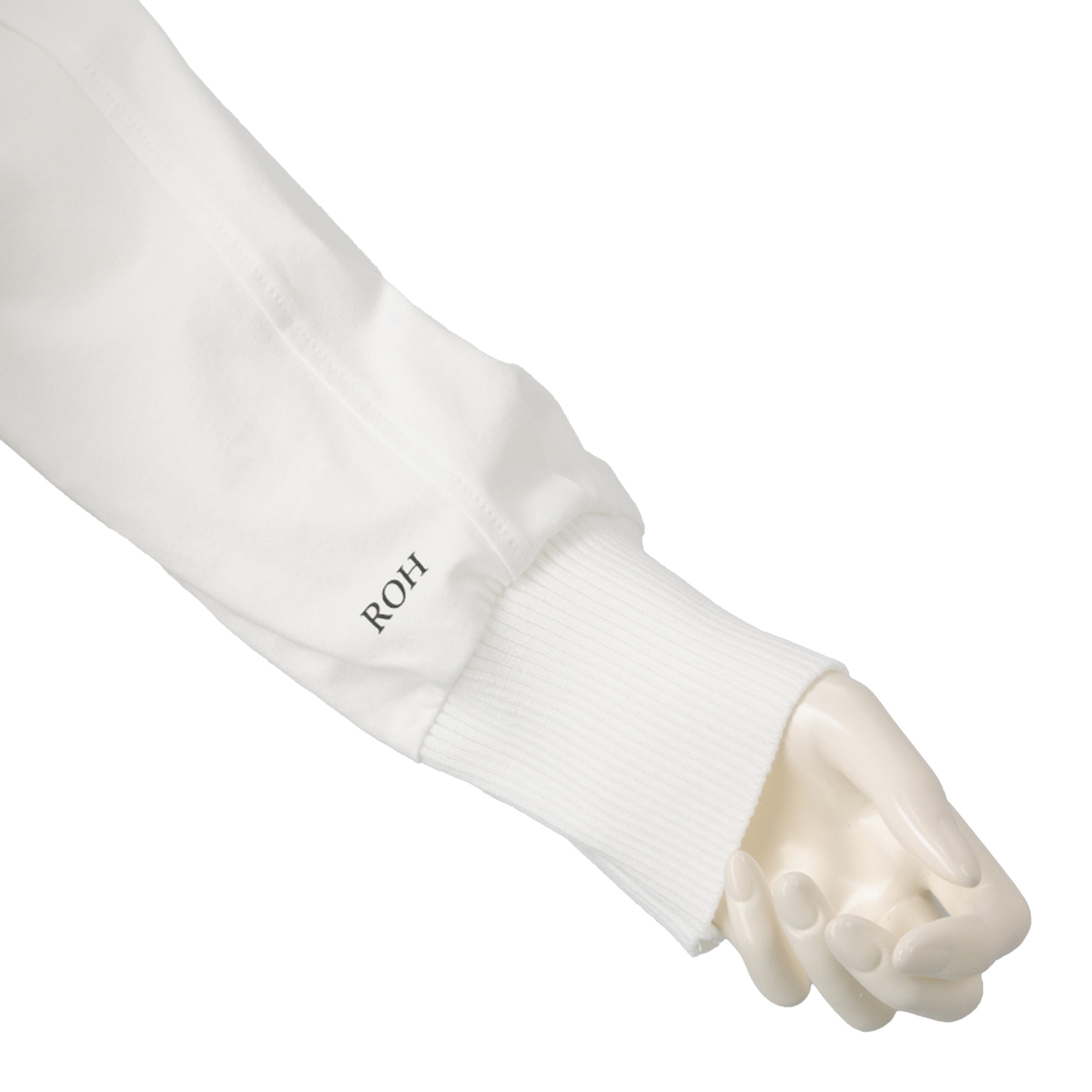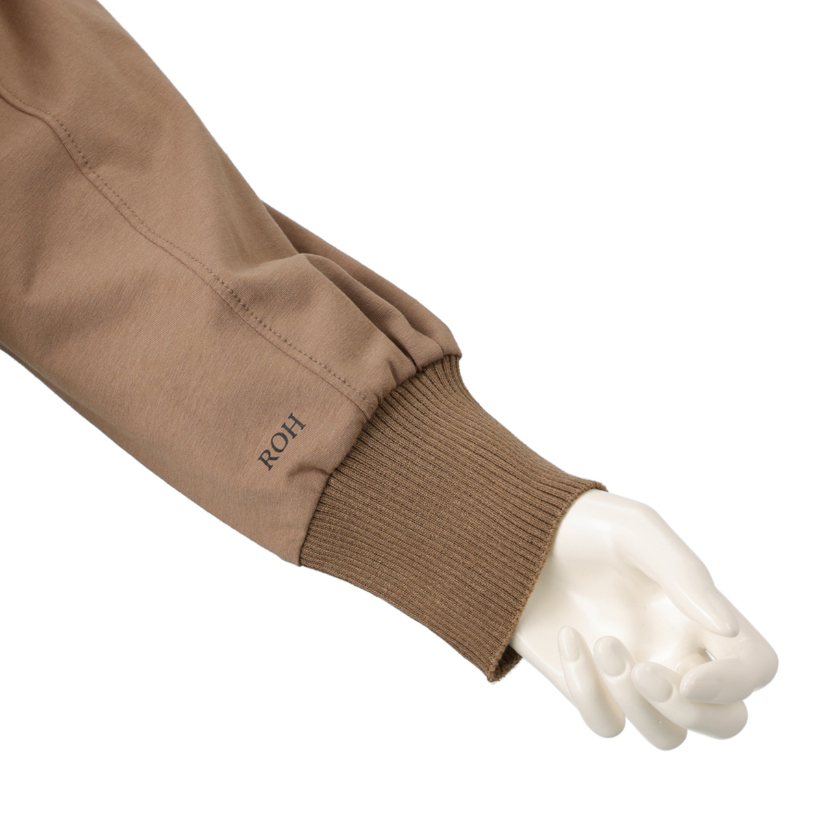 袖口をニットリブにしたきれいめカジュアルスタイルで、少しボリュームのある袖になるよう、外袖側に小さなタックを配置。左袖下側にのみ、さりげないプリントロゴを添えています