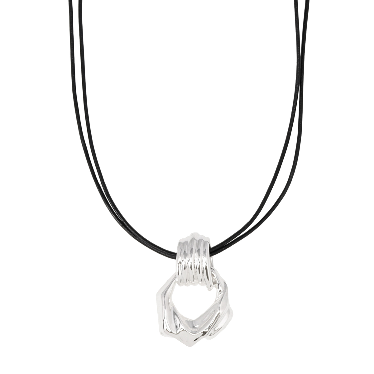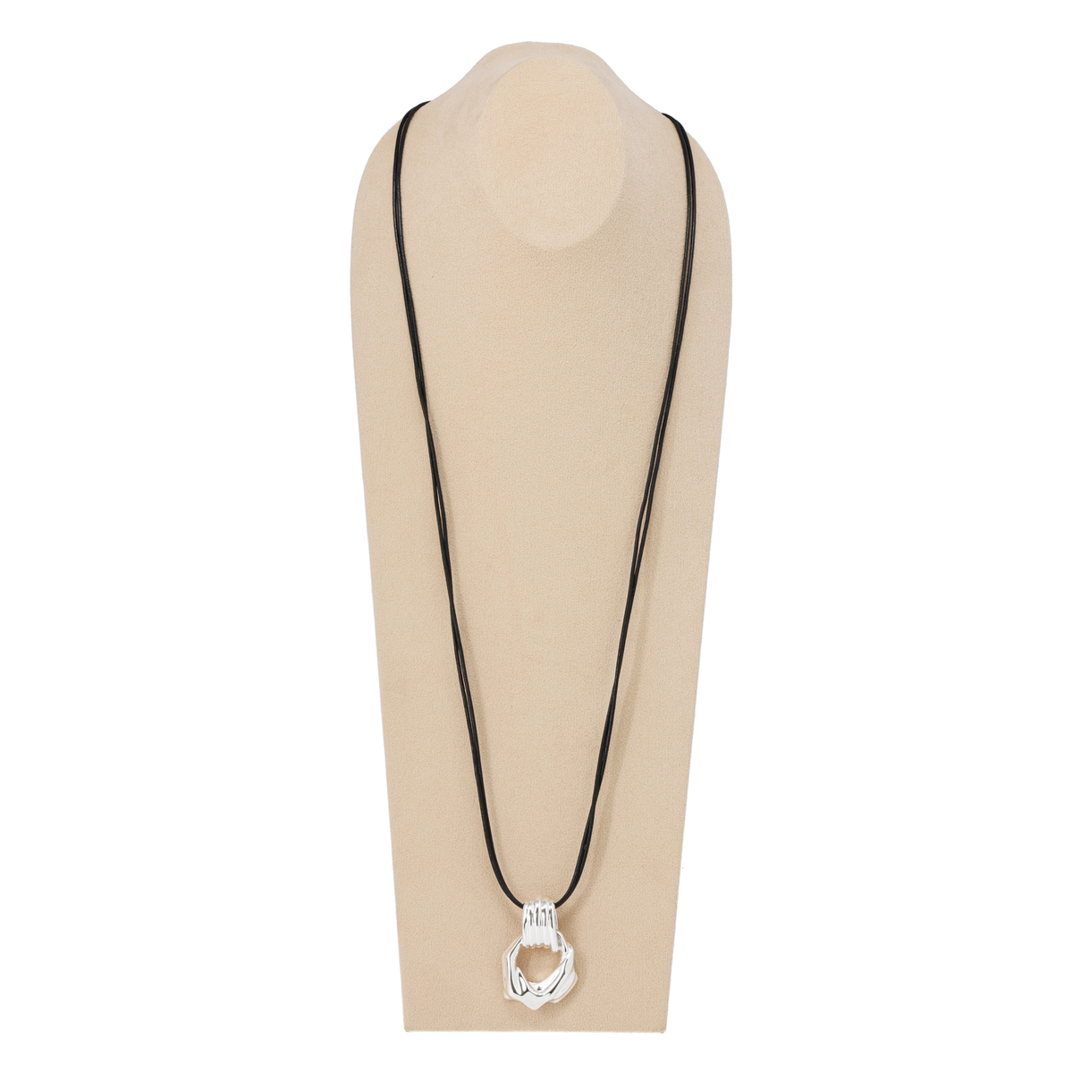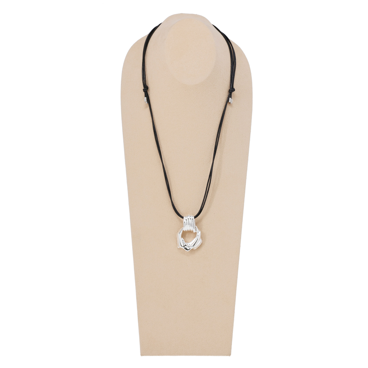 ヴィンテージ感あふれるパターン柄モチーフと革紐を組合せたペンダント。独特の存在感が胸元を彩り、個性を引き立てます。長さを調整できるため、さまざまなコーディネートやシーンに合わせて自由にアレンジできます