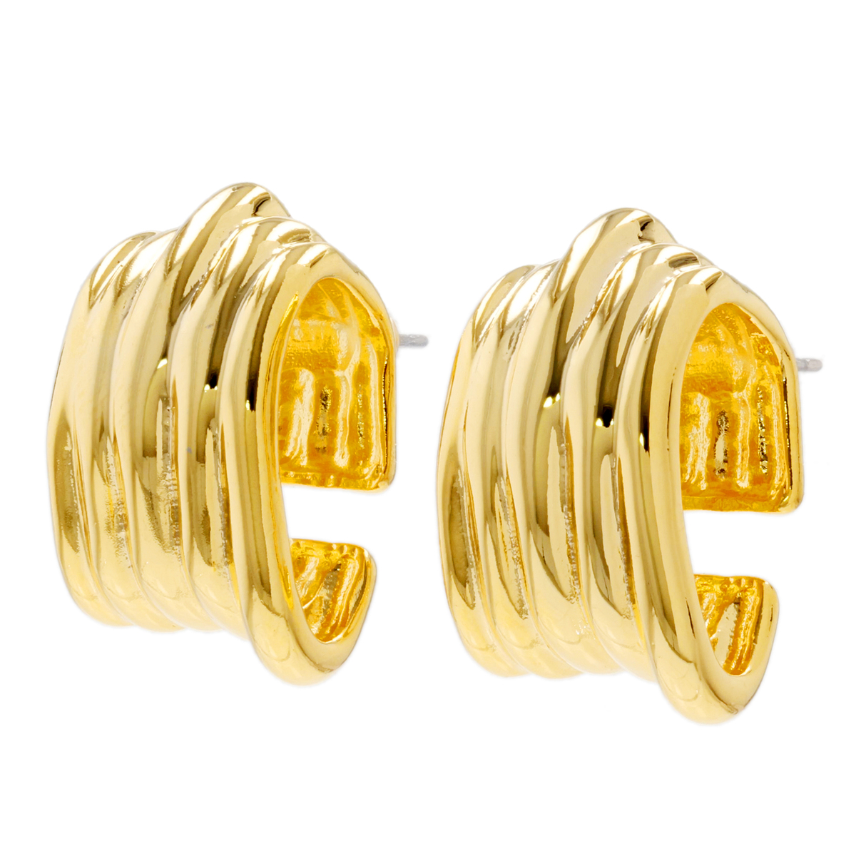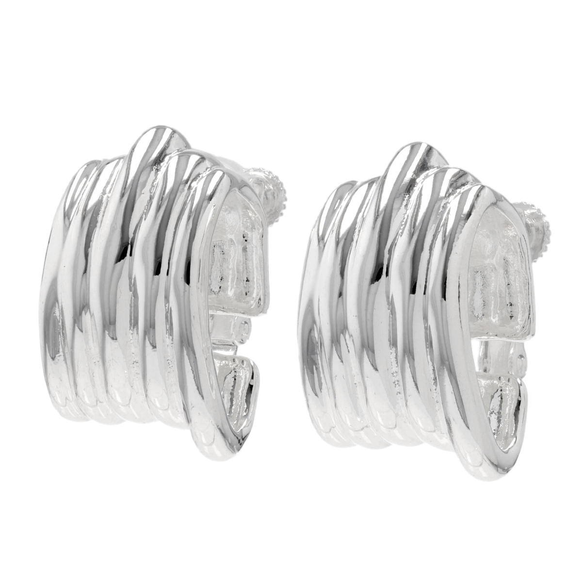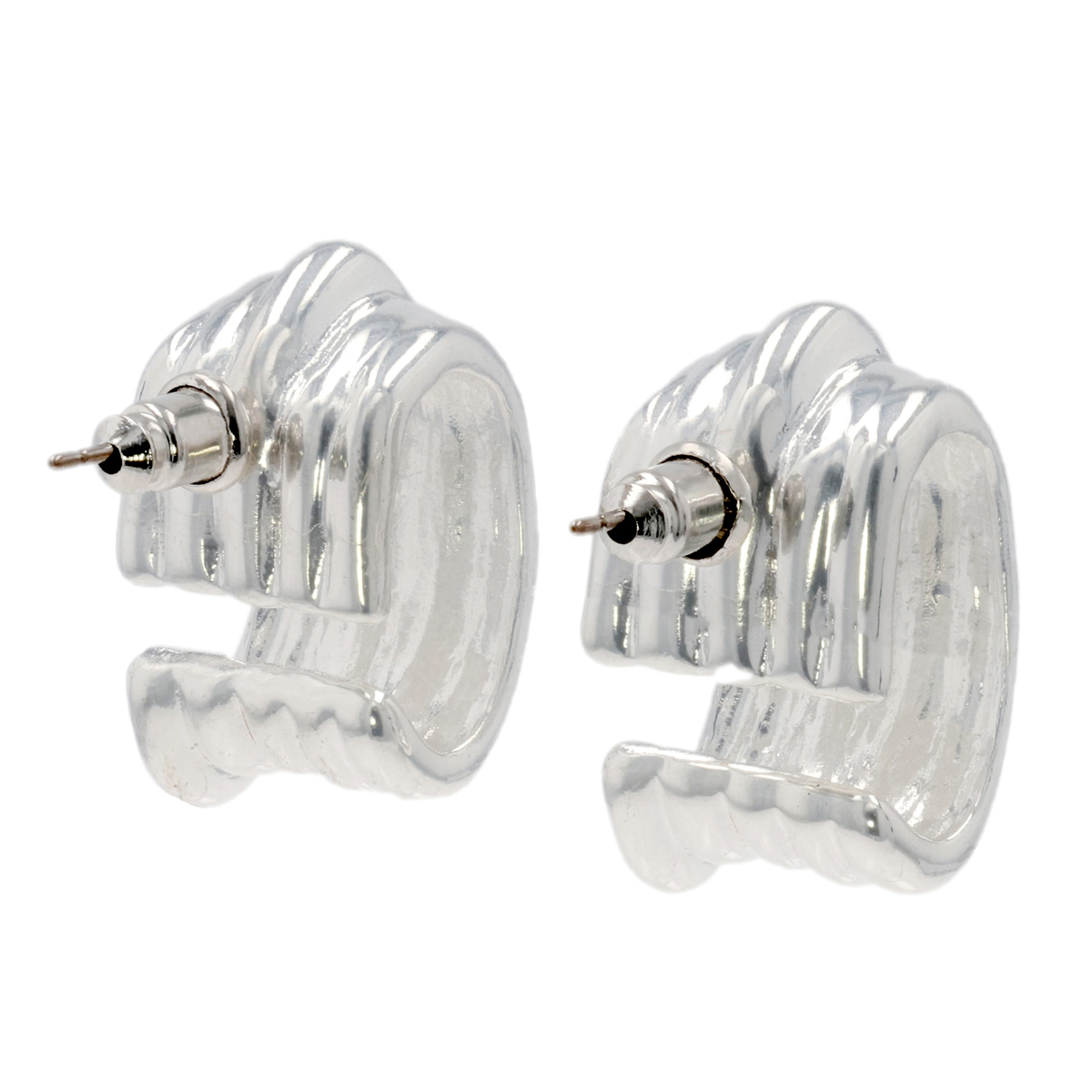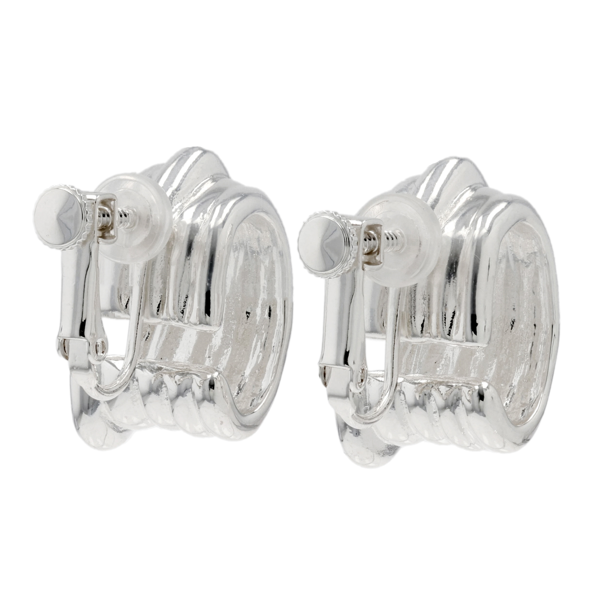 メタルリップル柄モチーフのイヤリングまたはピアス。ヴィンテージ感あふれるデザインが耳元を個性的に彩ります。普段のコーディネートにも取り入れやすいサイズで、さまざまなシーンで活躍します