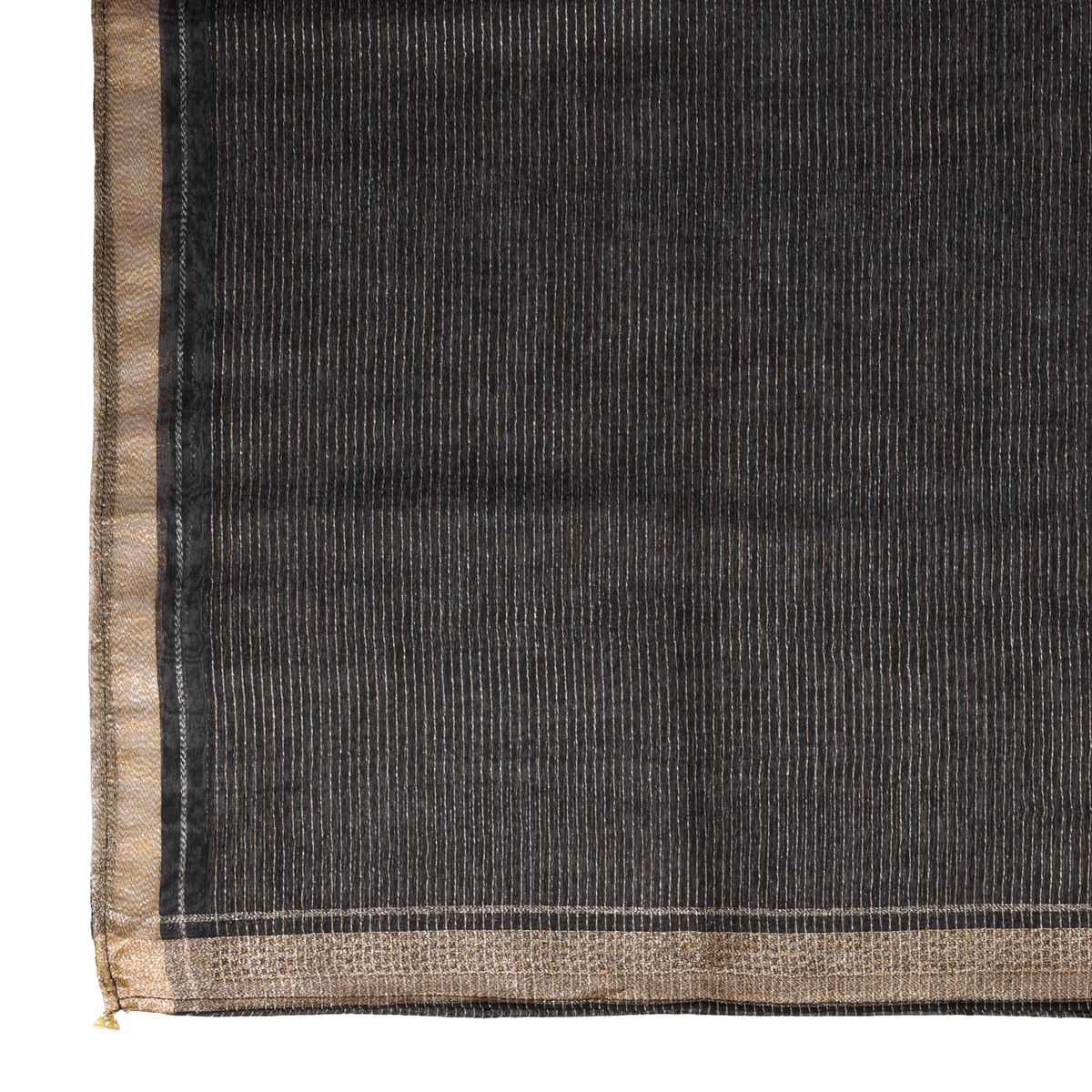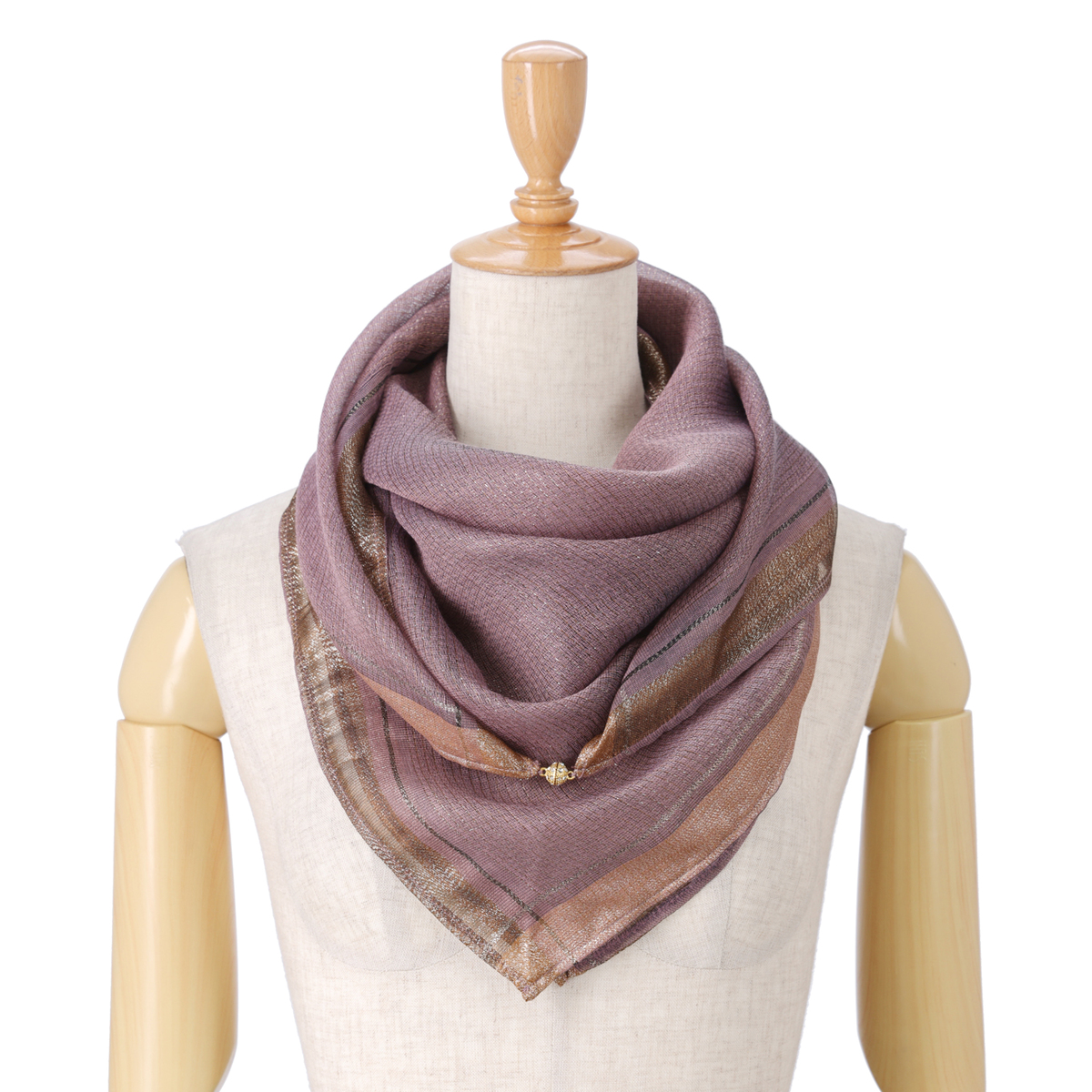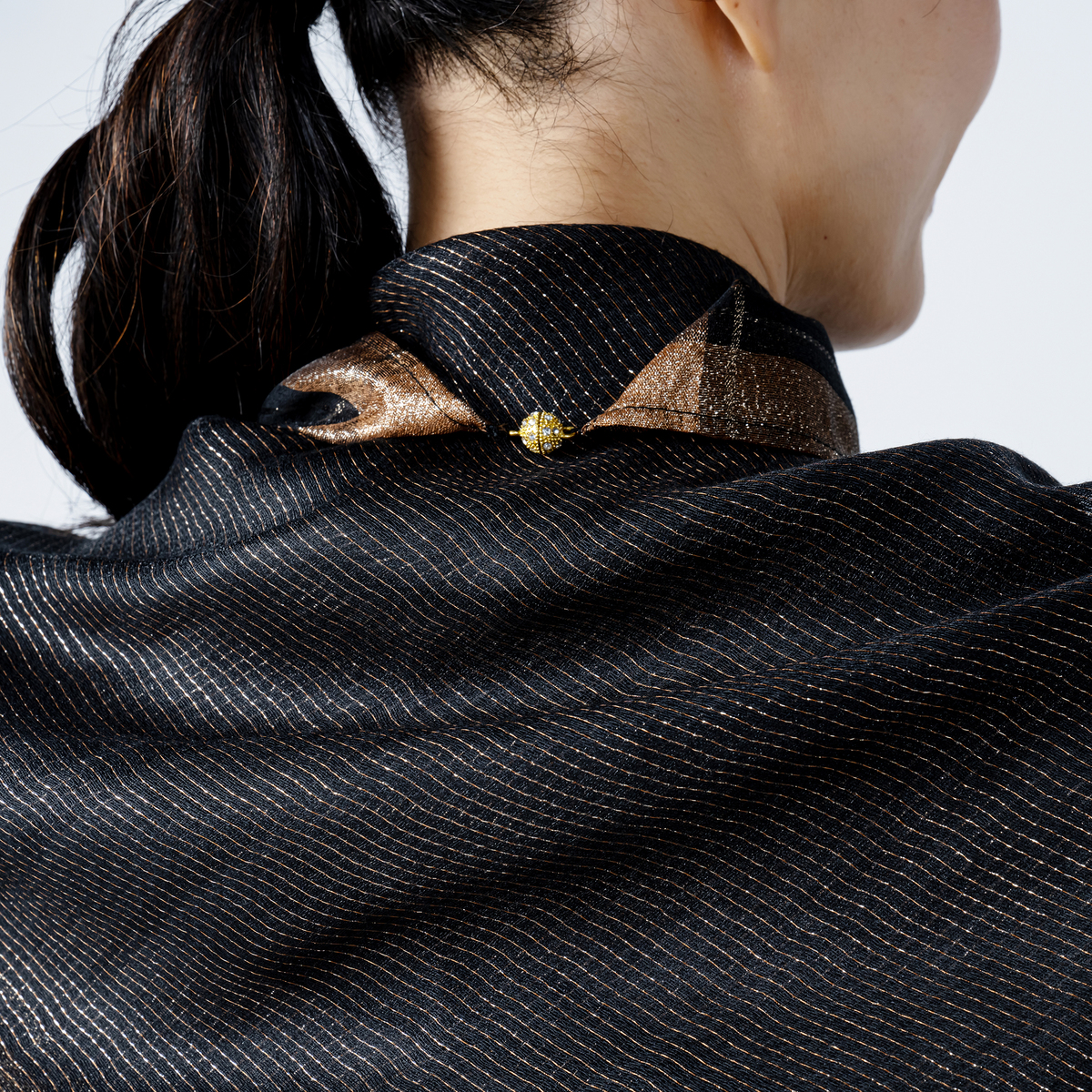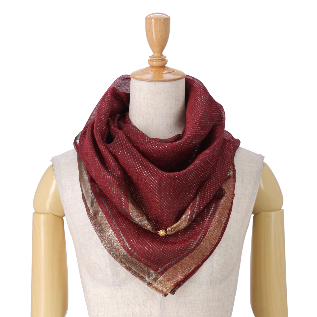 ゴールドのラメ糸を織り込んだストール。シア感のある素材が軽やかで、首元に華やぎを添えてくれます。洗濯機で洗えるため、汗や汚れが気になる時も手軽にお手入れできます(洗濯時は必ずネットを使用してください)