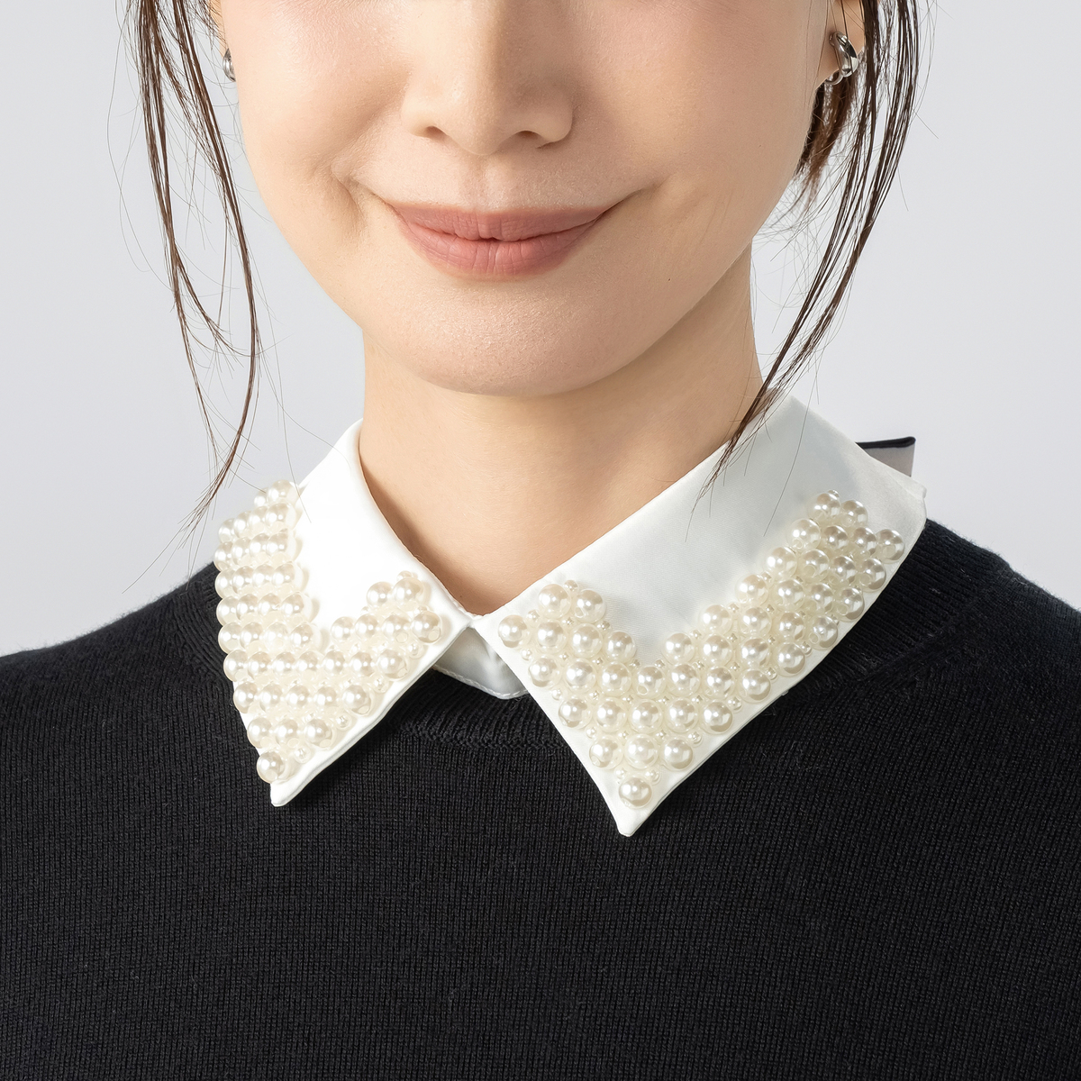 スカーフをきつめにしめないと襟が立つというか、首横が浮いてしまいます。合わせるトップスの襟の空き具合によっては少し下げてつけたいですが、立ってしまうので角ばってしまいとても変です。ビジューの重さで下がってくるのも気になります。