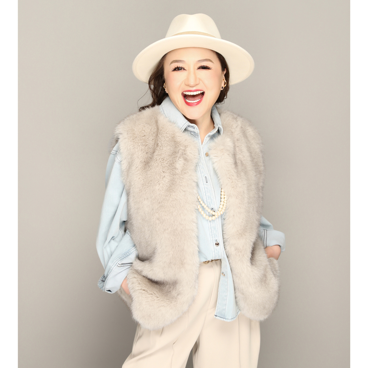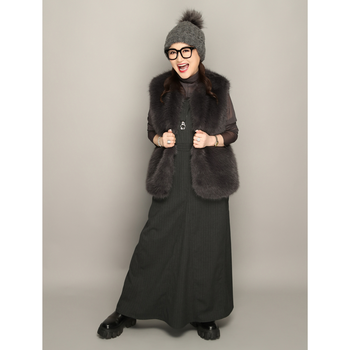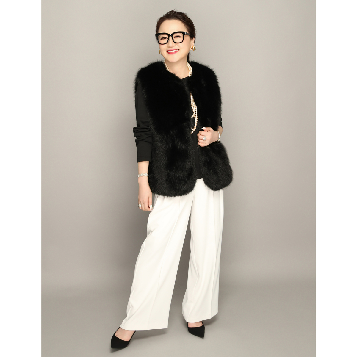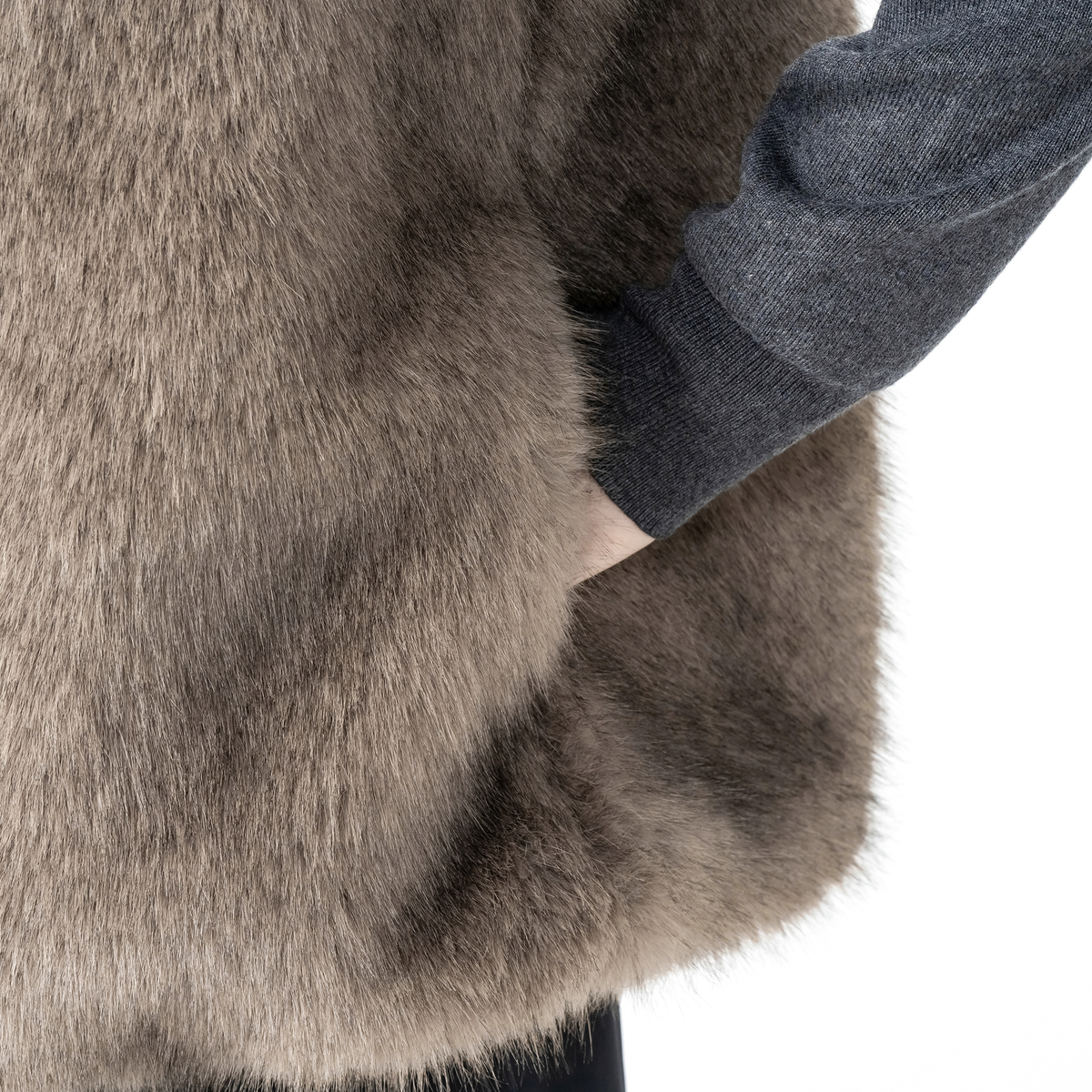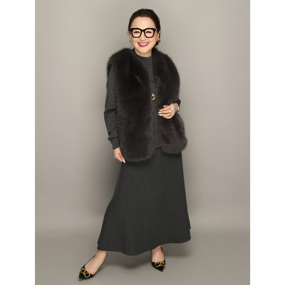 なめらかな毛並みのエコファーノーカラージレです。染色後のシルケット加工と、毛を丁寧にカットして整えることで、天然素材のような風合いに。毛並みの美しさがコーディネートに品を添えます