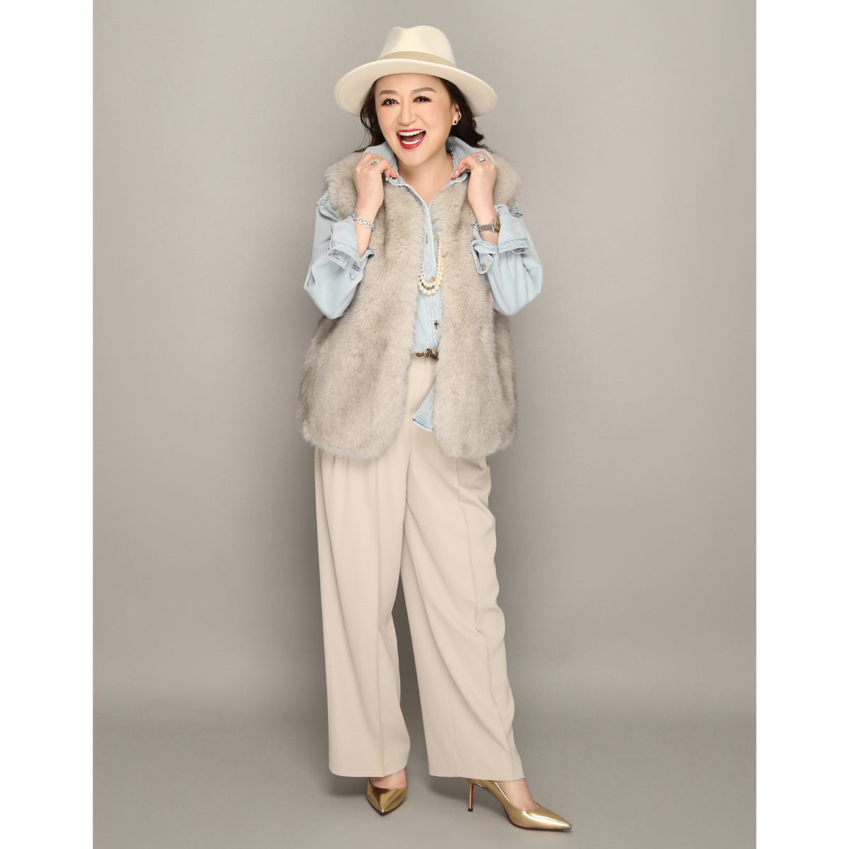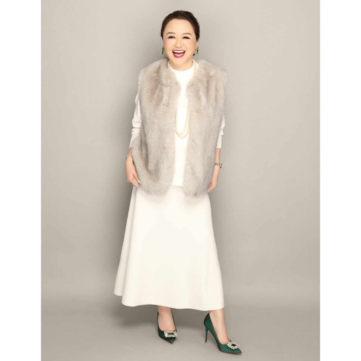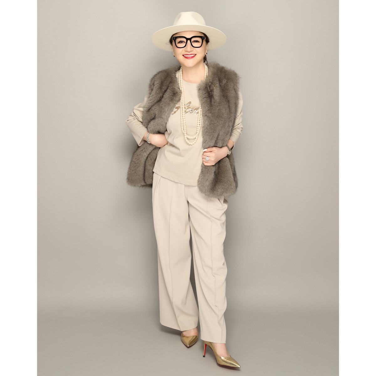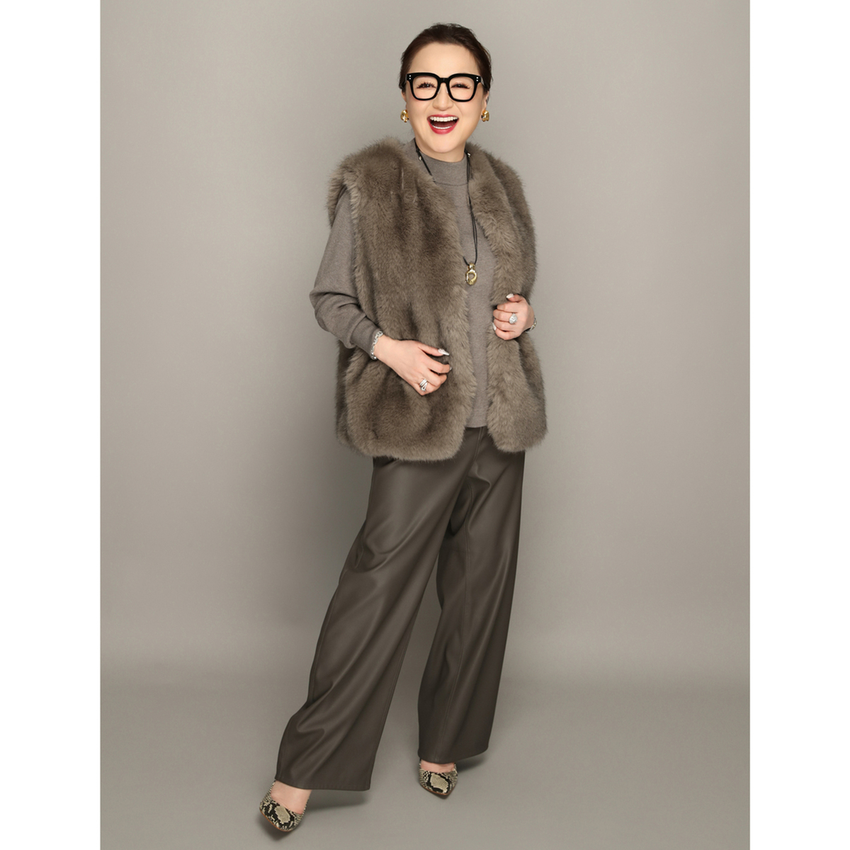 なめらかな毛並みのエコファーノーカラージレです。染色後のシルケット加工と、毛を丁寧にカットして整えることで、天然素材のような風合いに。毛並みの美しさがコーディネートに品を添えます