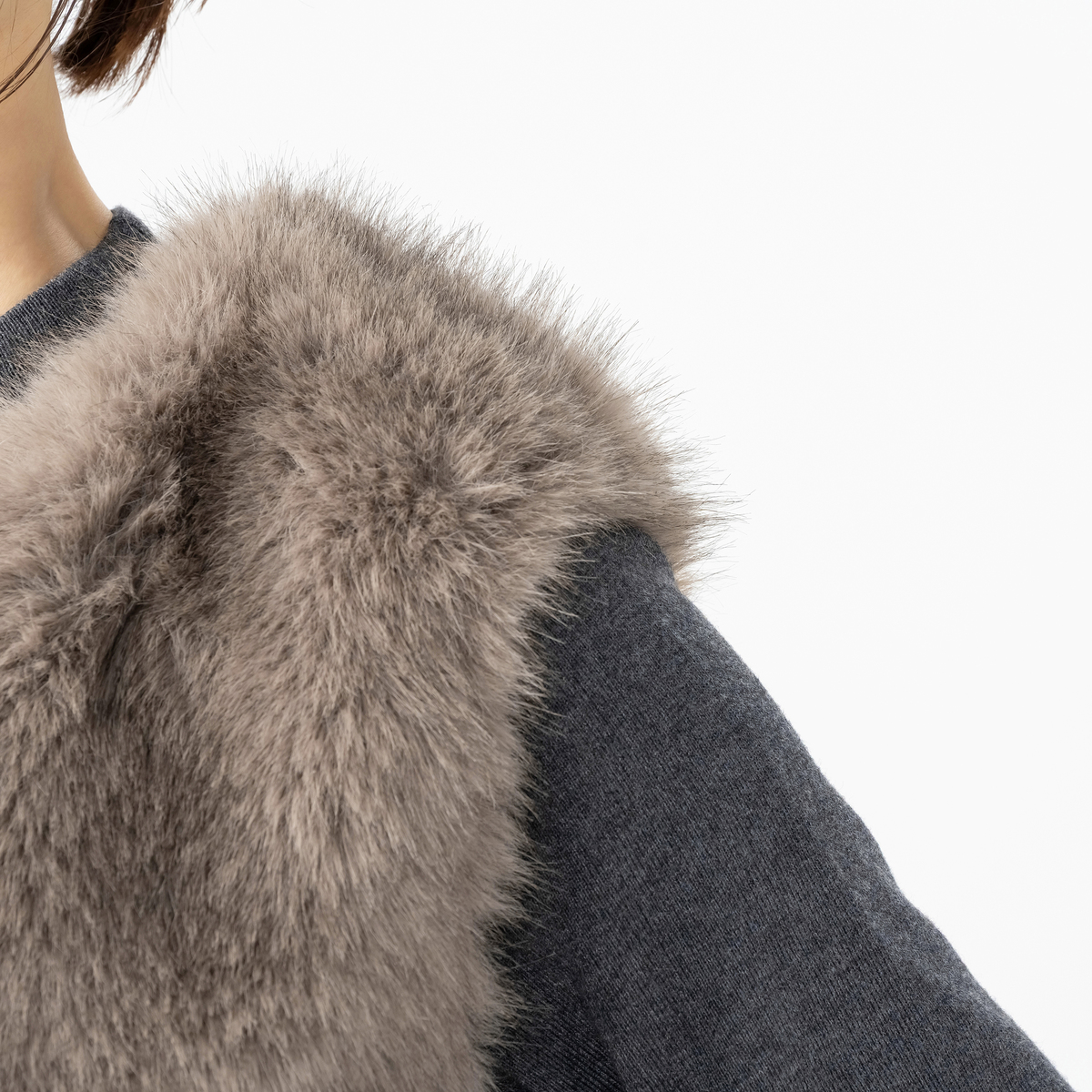 No. 745397 Anne Coquine ラクーン調エコファーノーカラージレ