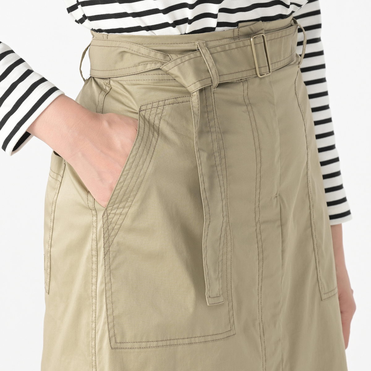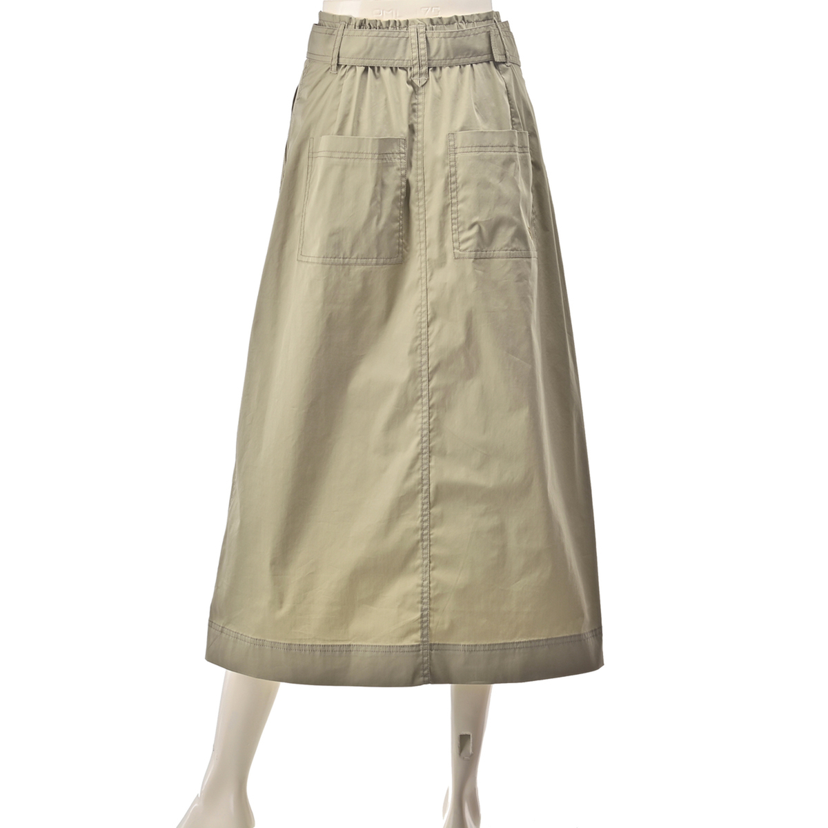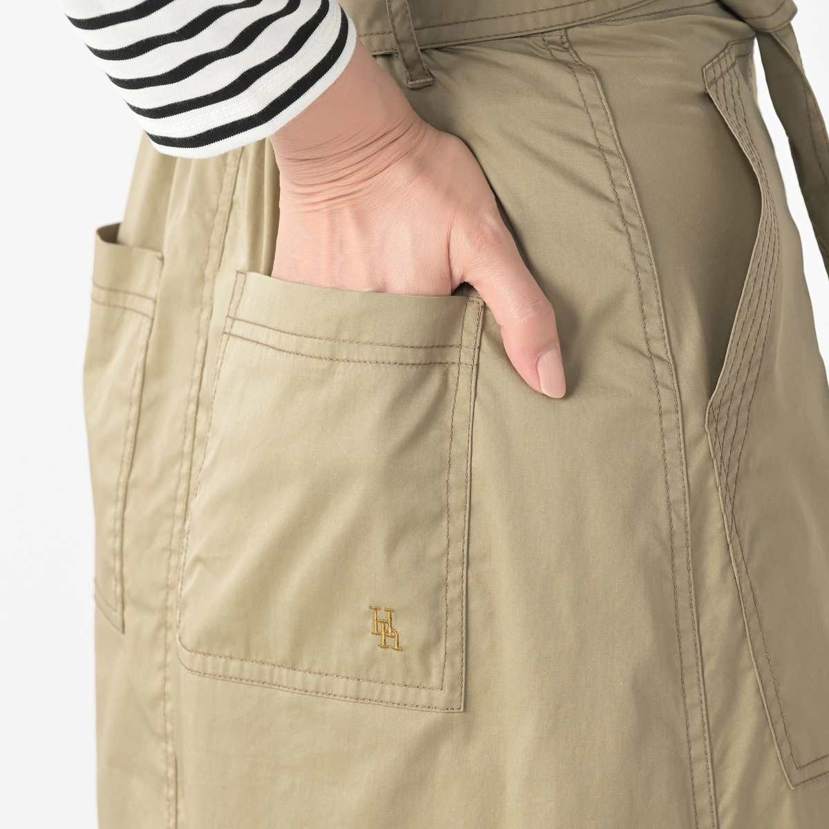 配色ステッチと大きめのポケットが特徴のAラインスカート。後ろ右ポケットにはブランドオリジナルのロゴ刺繍を施し、さりげないアクセントに