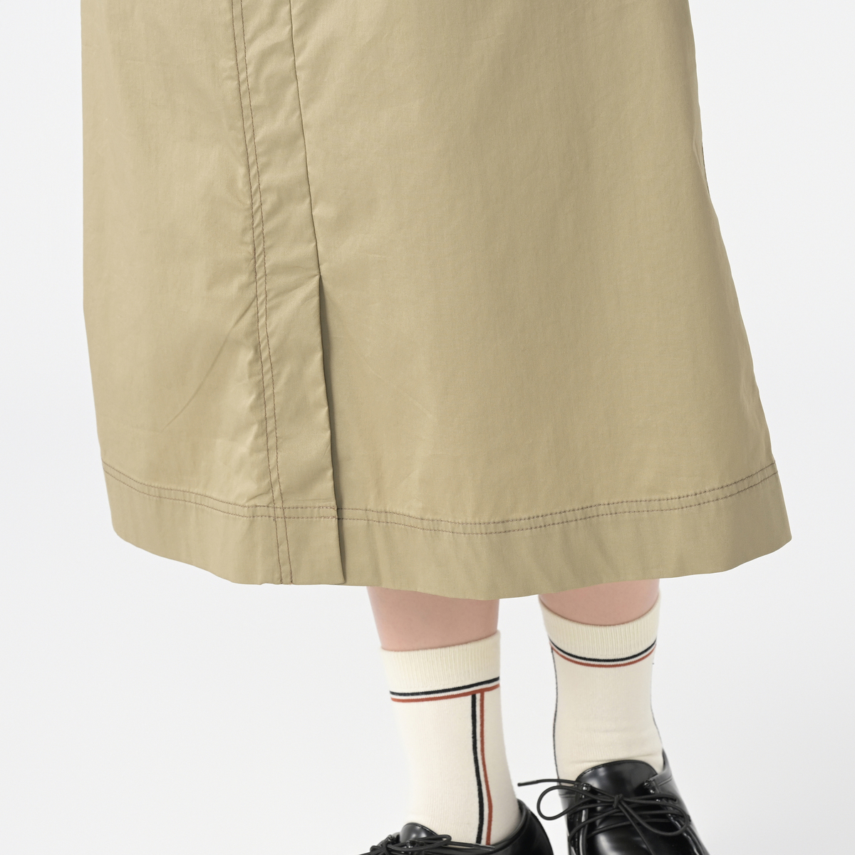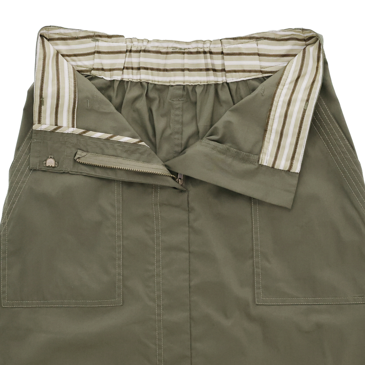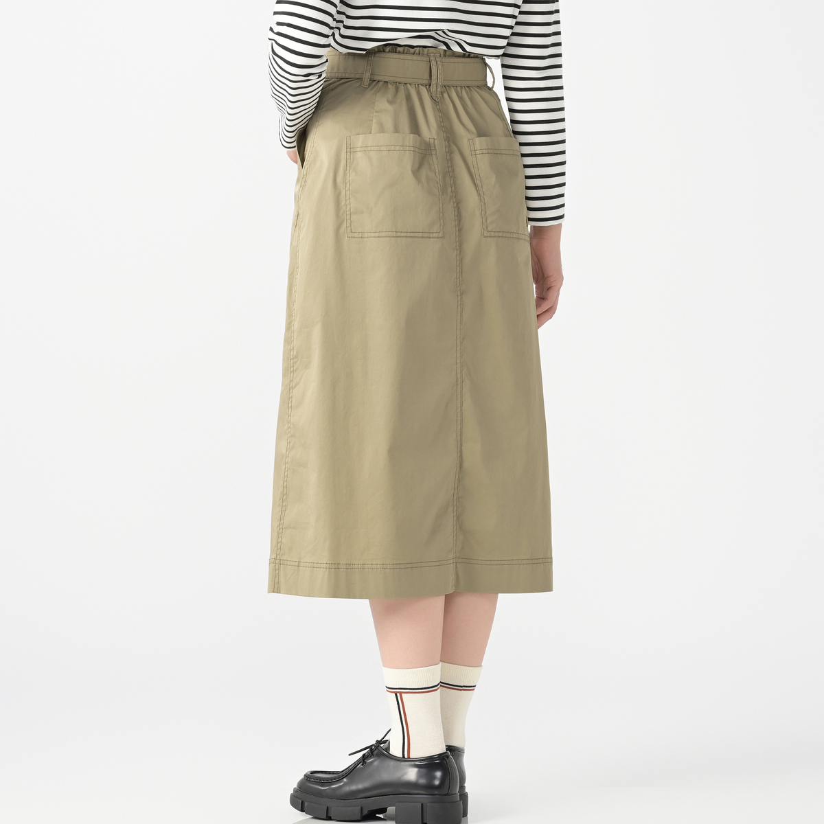 配色ステッチと大きめのポケットが特徴のAラインスカート。後ろ右ポケットにはブランドオリジナルのロゴ刺繍を施し、さりげないアクセントに