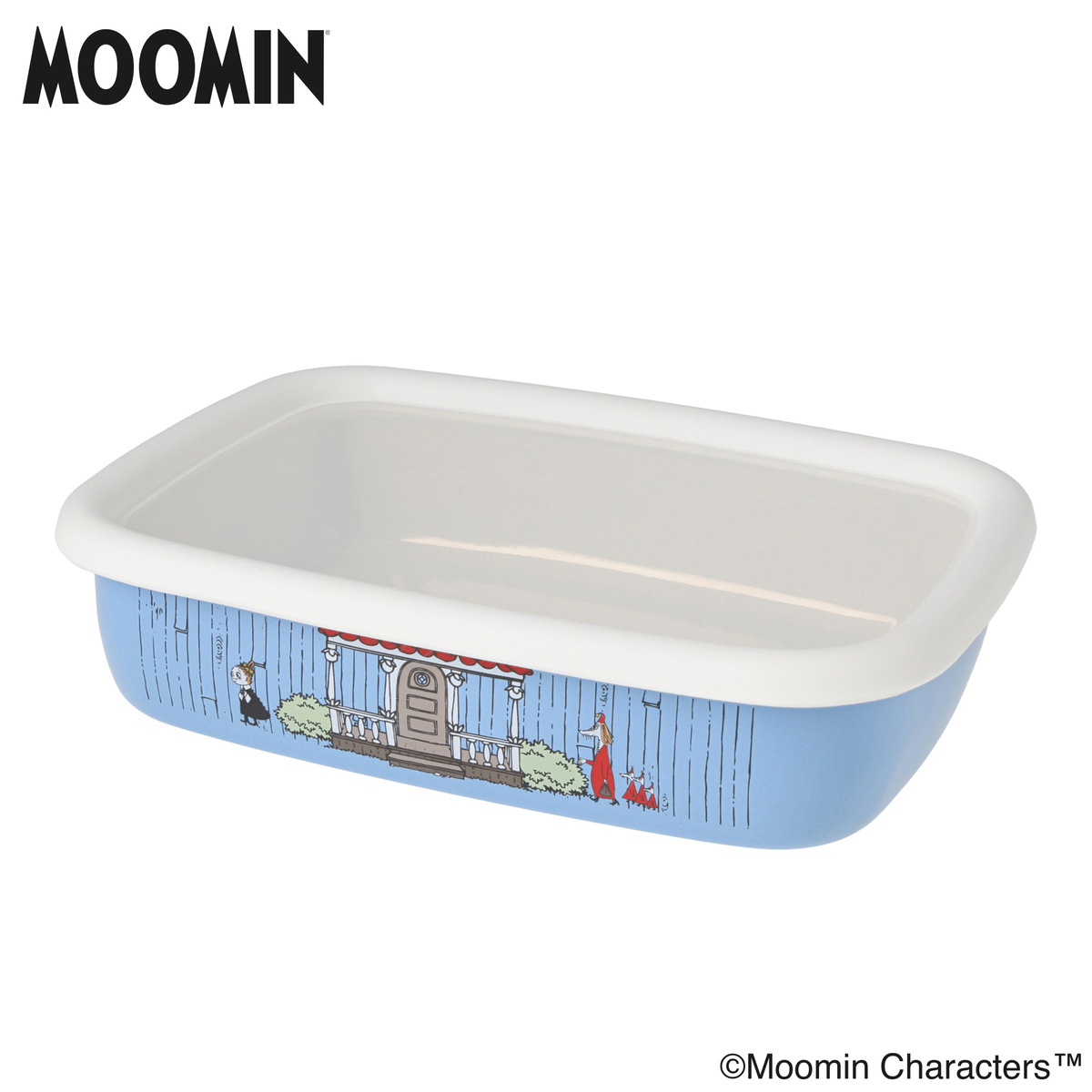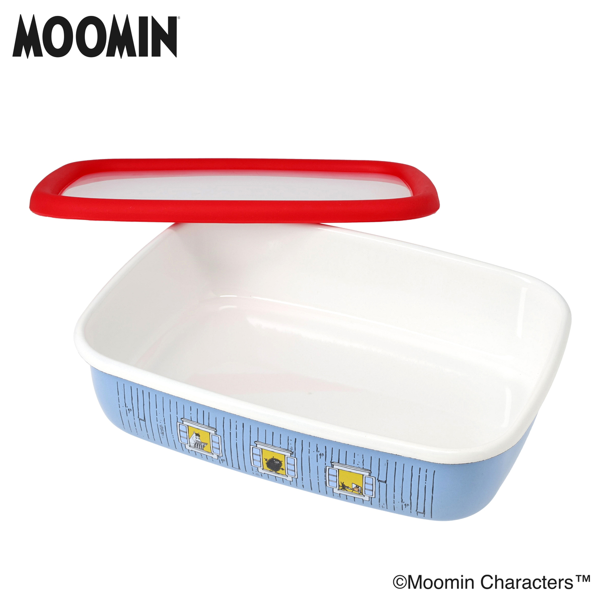 ムーミン達が住んでいる家をモチーフにした、可愛らしいデザインの浅型角容器。ガラス質の表面で匂いや汚れがつきにくく、お手入れがしやすく。酸や塩分に強いため、食材の保存におすすめです*