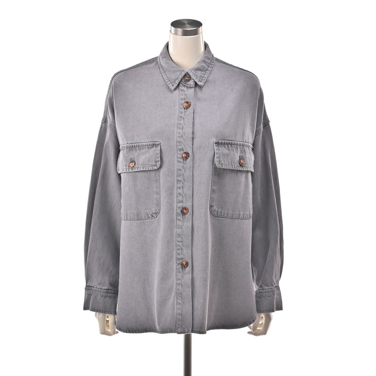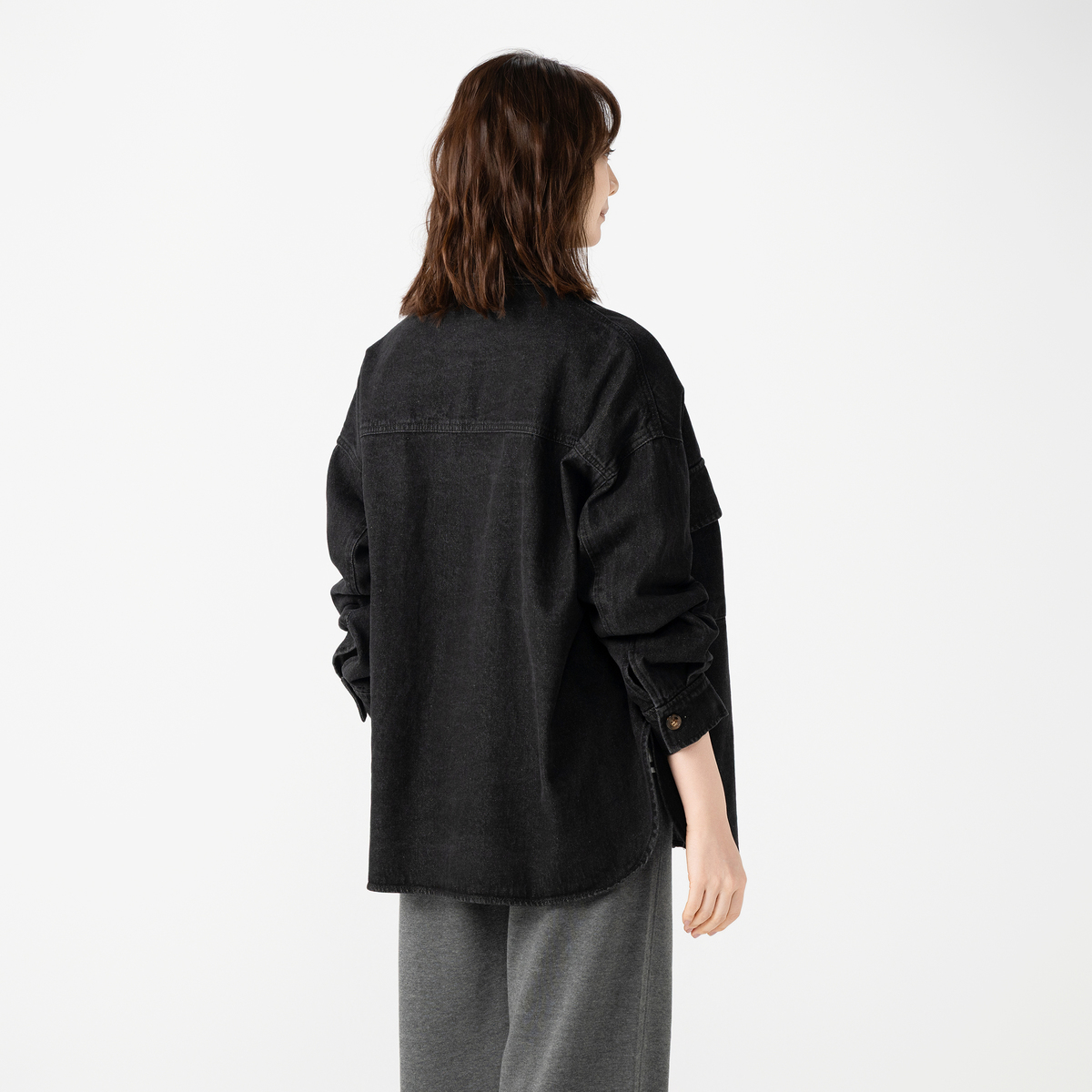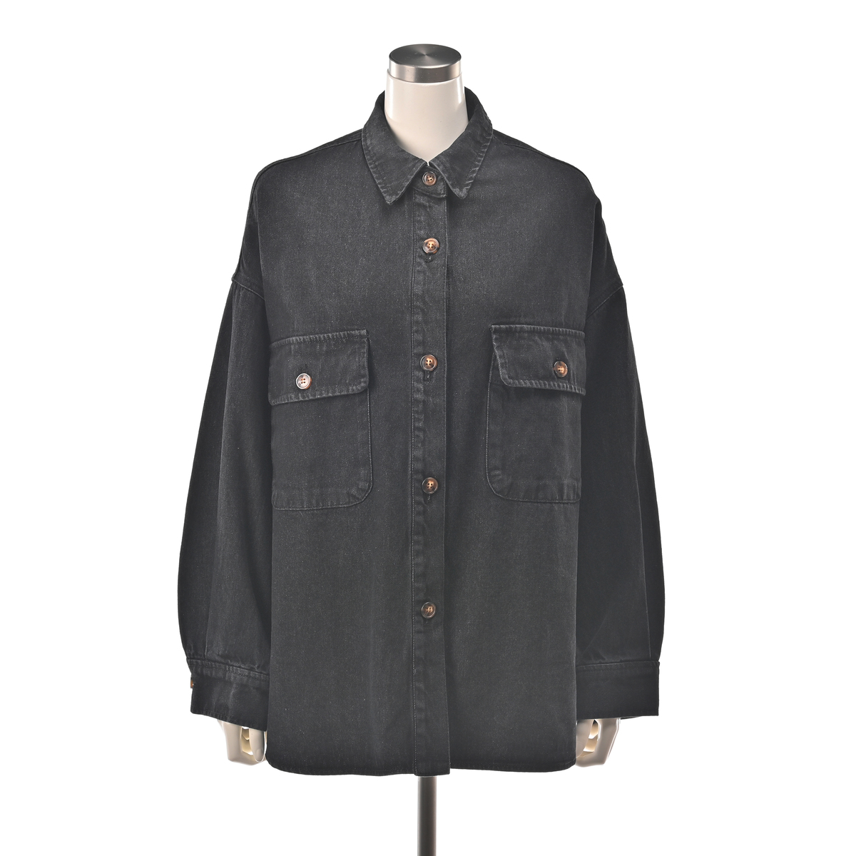 大きめに羽織るイメージのシャツジャケット。デニムなので様々なアイテムと合わせやすく、羽織るだけでトレンド感のある着こなしに。胸ポケットがアクセントになるデザインです