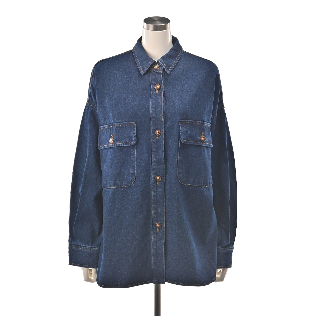 161センチ50キロでライトインディゴМサイズ購入しました。 とてもしっかりした生地で(人によっては重く感じるかも)、色は綺麗なデニムブルーです。 横に深く入ったラウンドスリットがスタイル良く、茶系ボタンがシャツよりも上着感が出て高見えすると思います。 ステッチが少なくてシンプルなデザインも気に入りました。 厚手のニットやスエットの上に羽織ったり、寒くなればその上からさらに上着を着てもサマになると思います。 色々オーバーデニムシャツを探しましたが私の理想通りで大満足です。