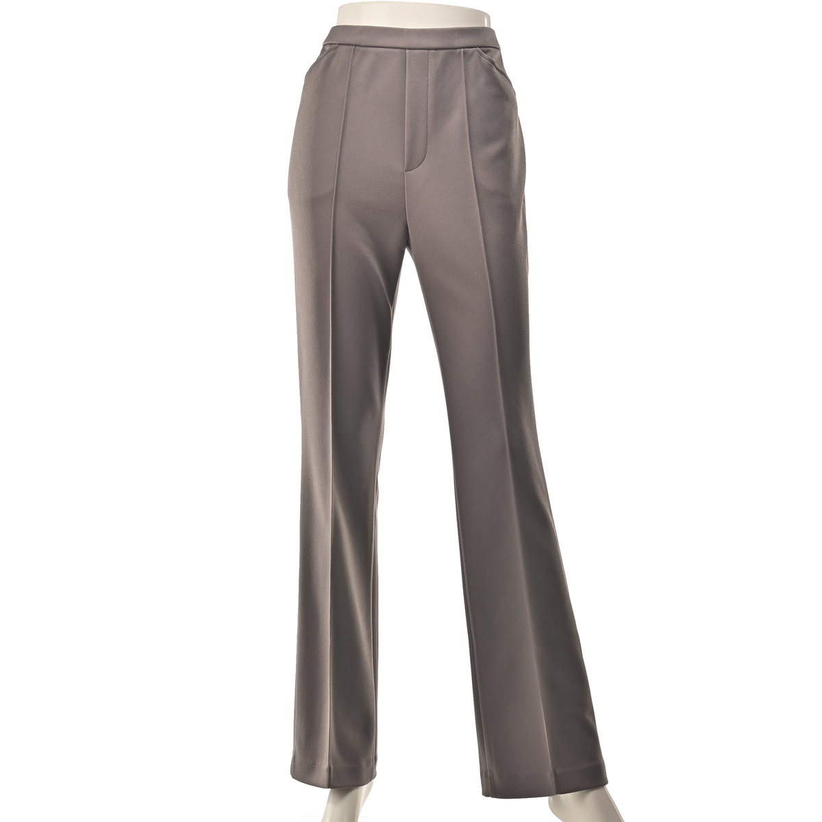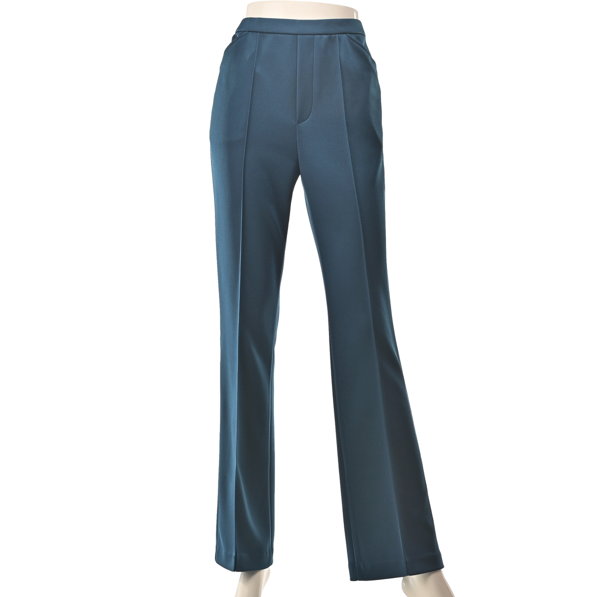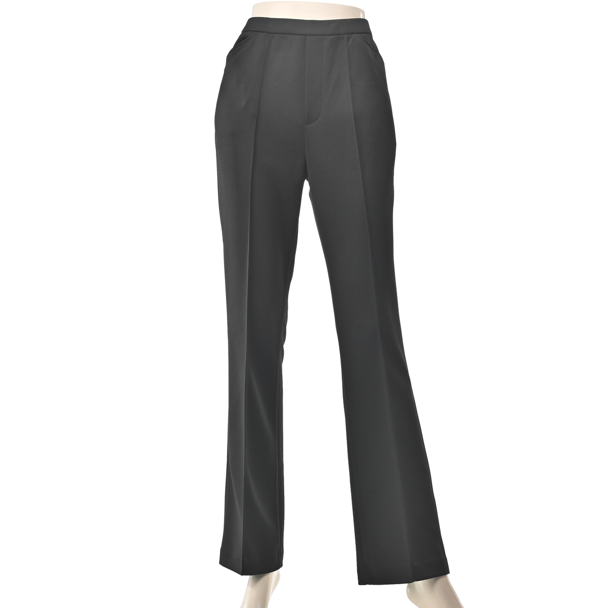 パンツ専門工場で完成度にこだわっておつくりした、大人のブーツカットパンツです。極細ピンタックが縦のラインを強調し、細見えと脚長効果が期待できます。フェイク前開きのステッチ入りできちんとした印象も。後ろダーツで立体的なヒップを設計し、ヒップを高く見せる飾り片玉縁ポケットも配置しました