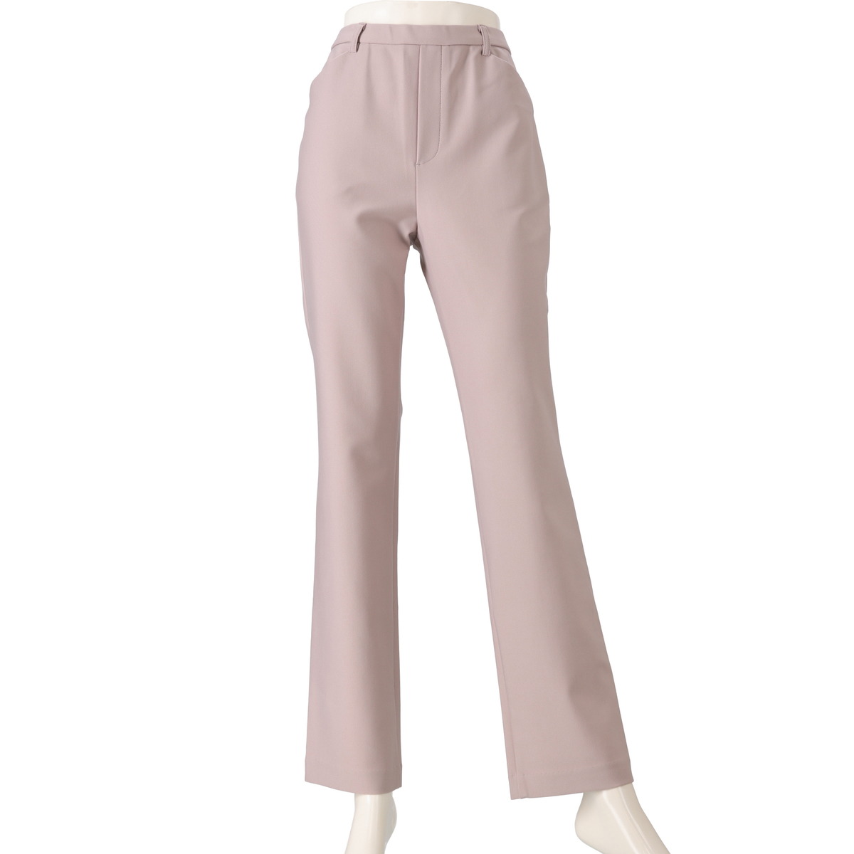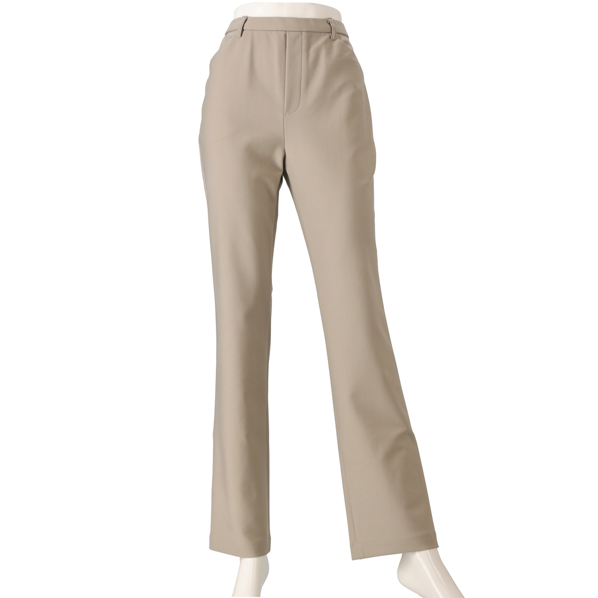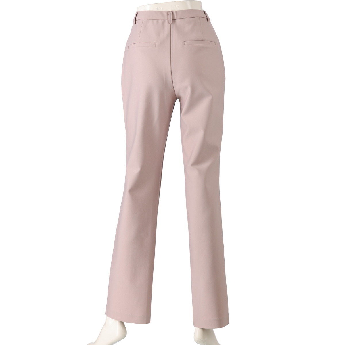 フェイク前開きのステッチを入れた、きちんとした印象のストレートパンツ。後ろダーツでヒップを立体的に見せ、飾り片玉縁ポケットの配置がヒップを高く演出します。ギャザーのないウエストはすっきりと見え、膝から裾までバランスの取れた美しいラインが魅力です