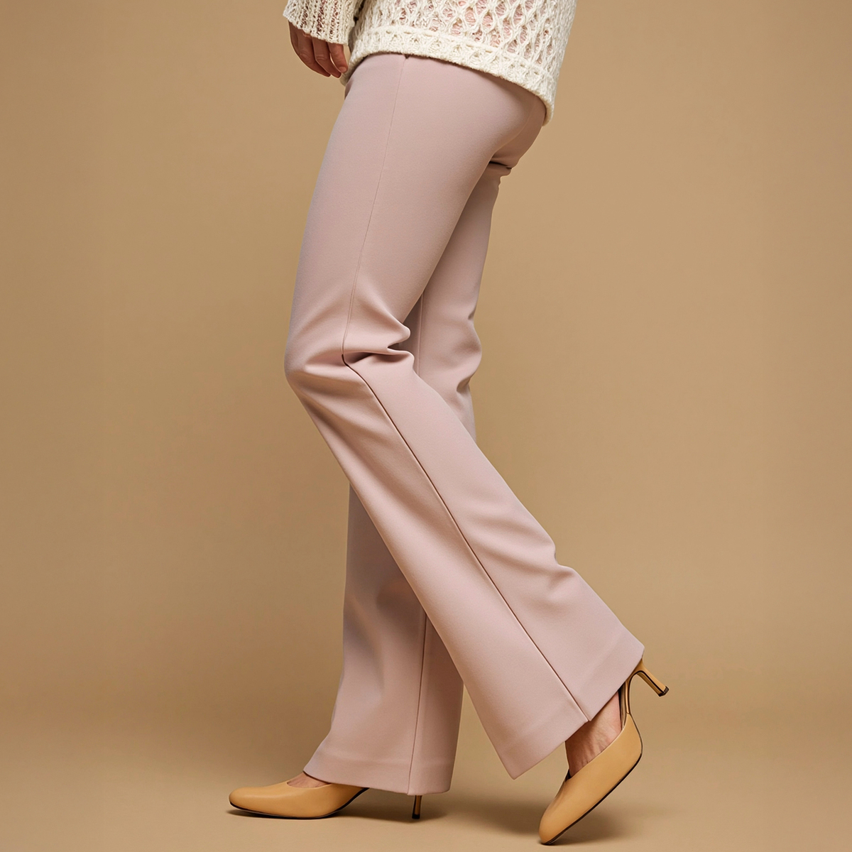 とにかく色が気にって購入です。いつも黒、紺、グレー、ベージュと無難な色を選んできたのですが、70歳になって綺麗な清潔感のあるように心がけたいと探していたのでピッタリでした。紺のジャケットにピンクのスカーフしても合うしベージュのコートにもとても明るく良い感じです。身長も縮んできたのでスリムパンツは履けません。ブーツカットか、ストレートがとても綺麗で上品です、プレバドールさんには茶色やグレーも良いのですが、これからも是非この様な色もお願いしたい