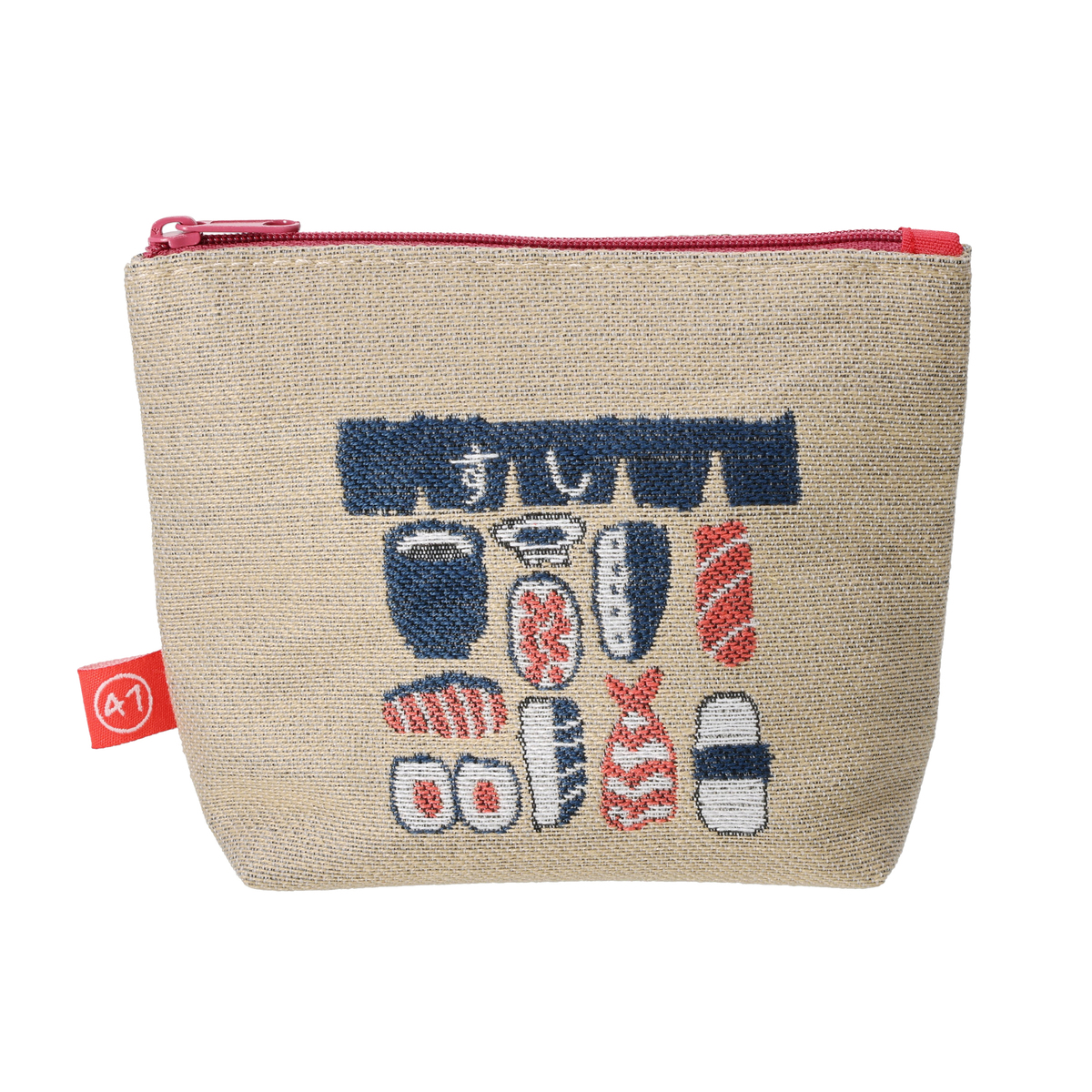 東京を表すモチーフとして「江戸前寿司」をデザインした、ジャカード織りのポーチ。ジャカード織りならではの立体感とあたたかみが、豊かな表情を引き立てます