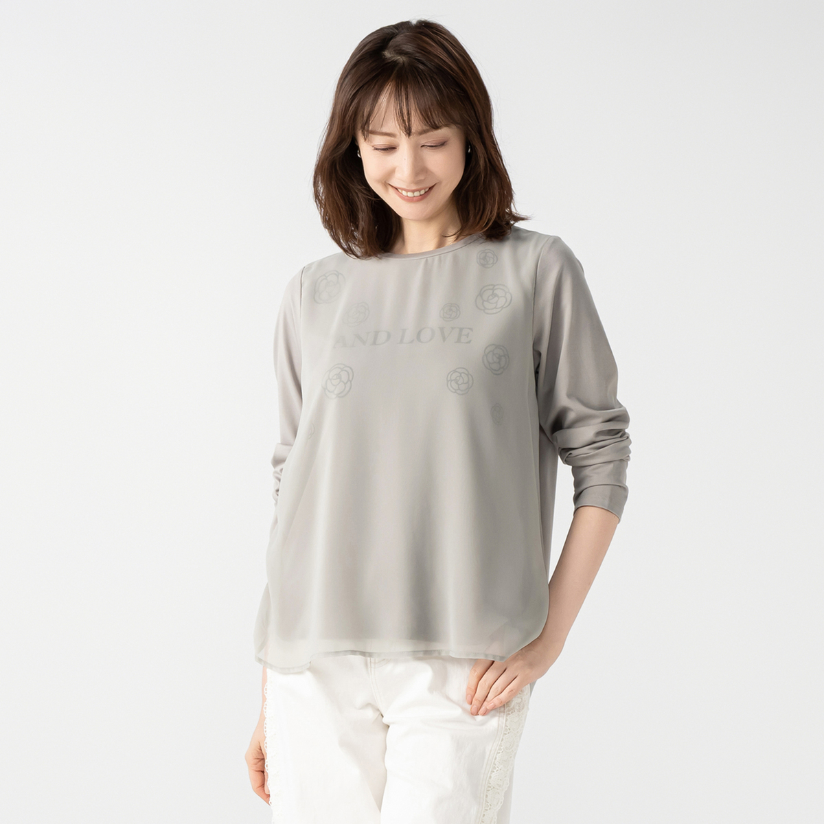 No. 745474 &LOVE 大人シアーなカメリアプリントプルオーバー