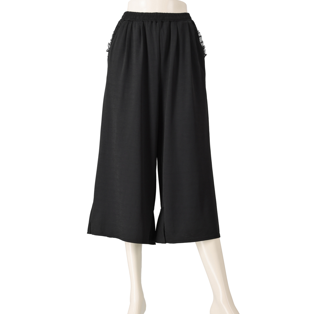 [商品寸法(ヌード)cm] サイズ ウエスト ヒップ 股下 S : 67(58〜64)101(82〜90) 49.5 M : 72(64〜70)106(87〜95) 50 L : 77(69〜77)111(92〜100) 50.5 LL : 82(77〜85)116(97〜105) 51 3L : 87(85〜93)121(102〜110)51.5 サイズ 前股ぐり わたり幅 S : 27 34.5 M : 27.5 35.5 L : 28 36.5 LL : 28.5 38 3L : 29 39 [ウエストゴム] 全体に有 [素材] 表地:ポリエステル93% ポリウレタン7% チュール部分:ポリエステル100% 裏地:ポリエステル100% [お手入れ] 洗濯機洗い可 [注意事項] ※商品寸法の誤差は多少発生します。ご了承下さい ※柄の出方は商品よって異なります ※洗濯ネット使用 ※浸け置き禁止 ※洗濯後は形を整えて直ぐに干してください ※洗濯又はクリーニングにより縮みや斜行が生じます ※アイロン時当て布使用 ※ゴム、装飾、付属部分アイロン禁止 ※濃色は汗や雨で湿った状態、又は着用による摩擦で他の物に色移りする事がありますのでご注意ください ※配色商品は色移り、色泣きすることがあります。汗・雨・水に濡れたまま放置しないで下さい ※着用や洗濯の際には、引っ掛かりにご注意ください ※この製品は、強い日光(又は照明)を長時間受けますと変色の恐れがあります。ご着用及び保管の際には、ご注意下さい 【中国製】