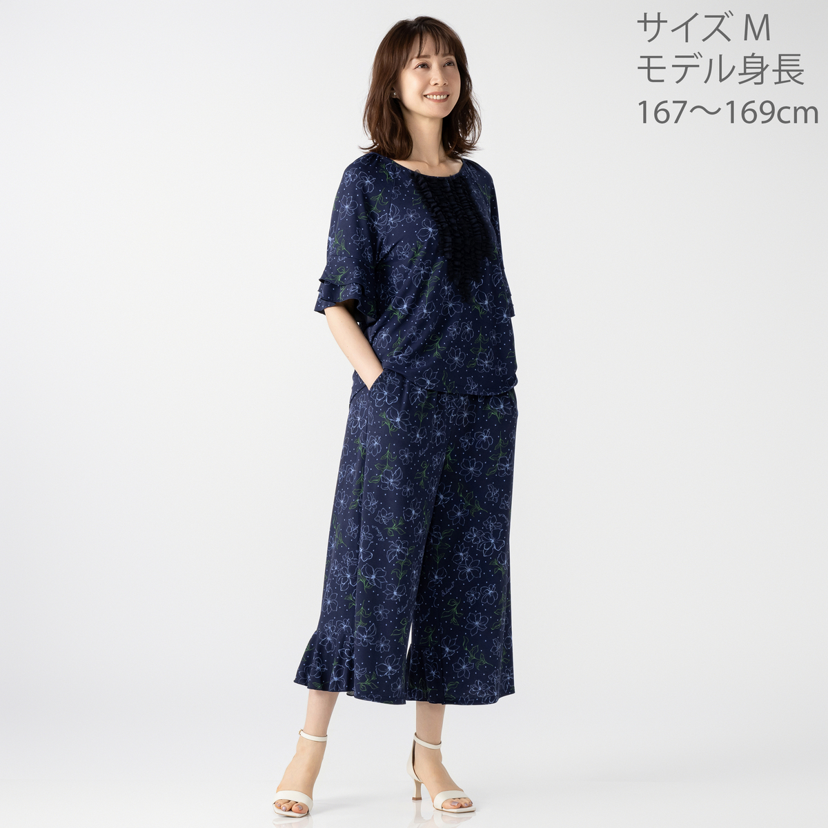 No. 745479 &LOVE ゴージャスふりるの線タッチフラワーリラクパンツ