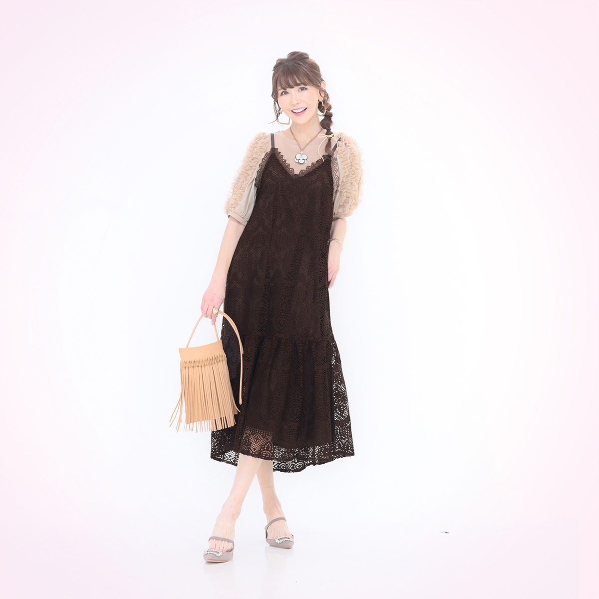 No. 745485 &LOVE フラワーラッセルレースの細魅えキャミドレス ネット限定