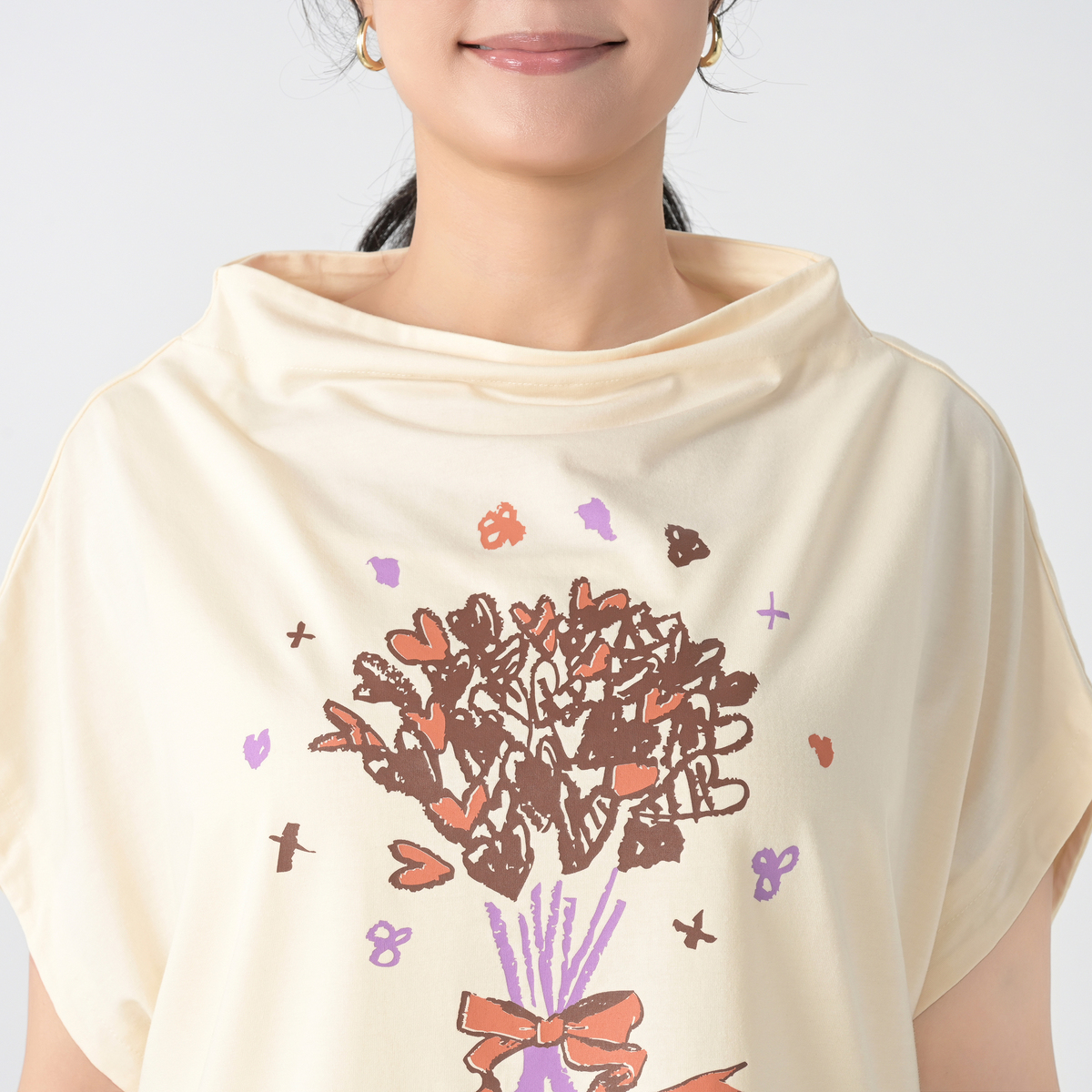 フロントいっぱいのプリント柄が、シンプルな中にもおしゃれなアクセントをプラスしてくれます