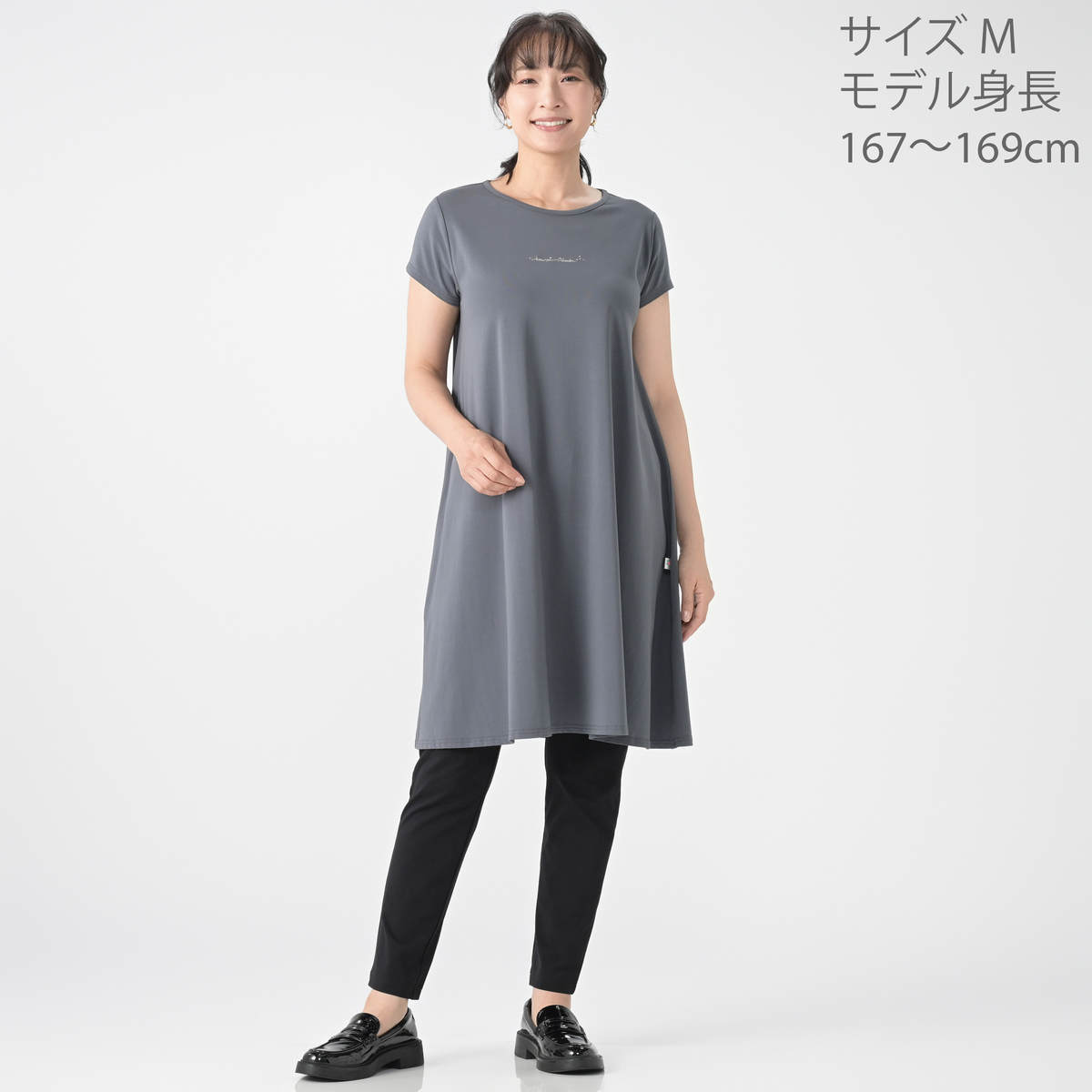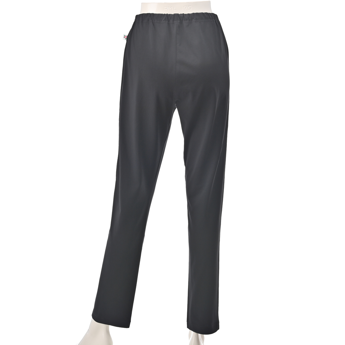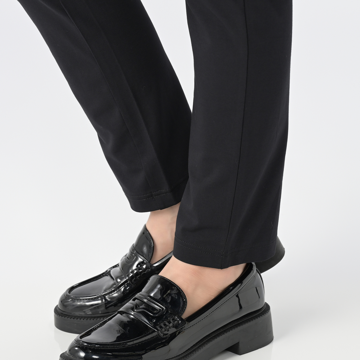 オリジナルのベア天竺素材で仕立てたスリムパンツ。脚のラインをすっきり見せるテーパードシルエットで、いつもの装いをオシャレにまとめます。ウエスト全体はゴム仕様で、引っ張って穿くだけのラクチンデザインです