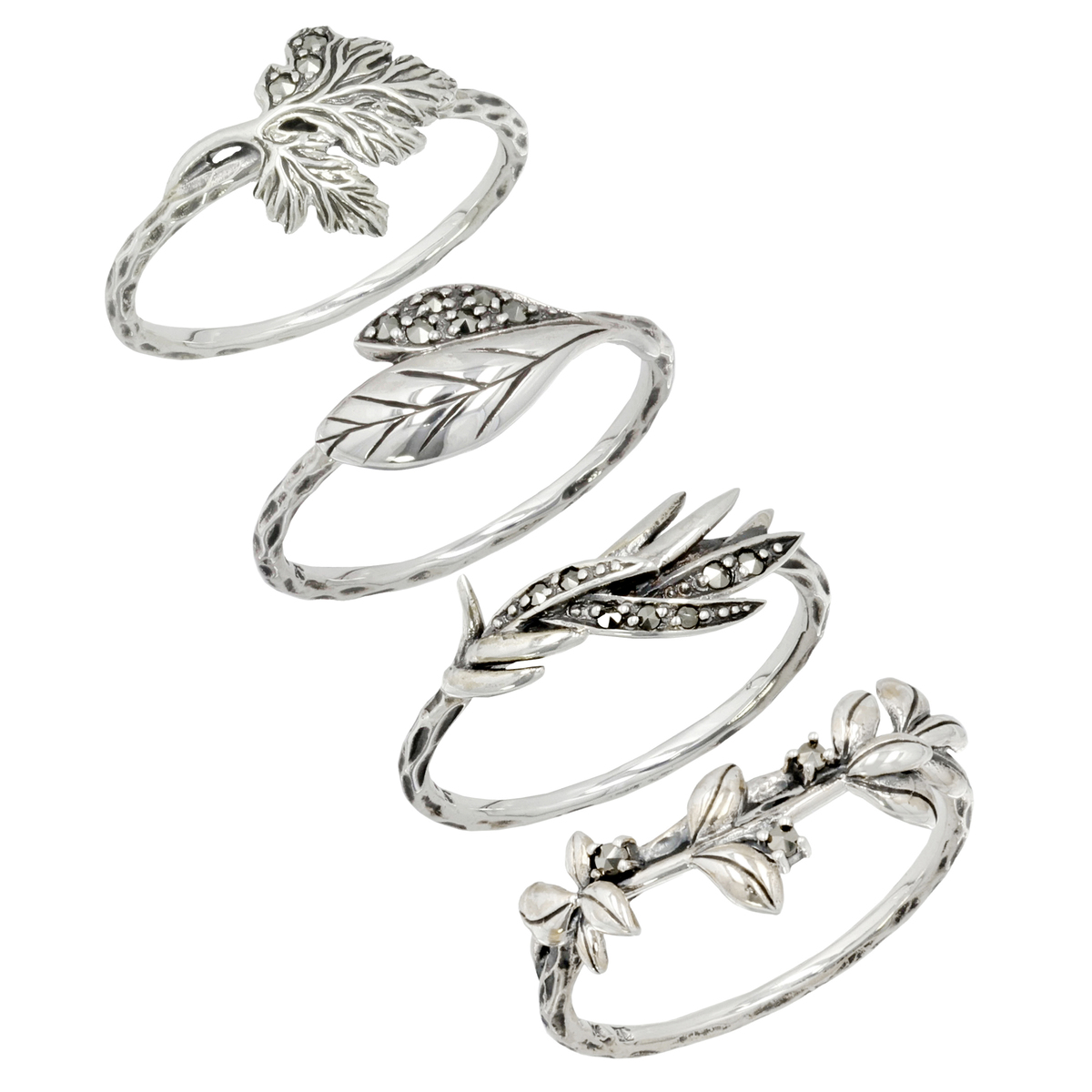 それぞれのハーブが美しく表現された、シルバー925素材の4本セットリング。細部にこだわったデザインは重ね着けすれば華やかで、セットでの存在感も一本での可憐さも魅力的です