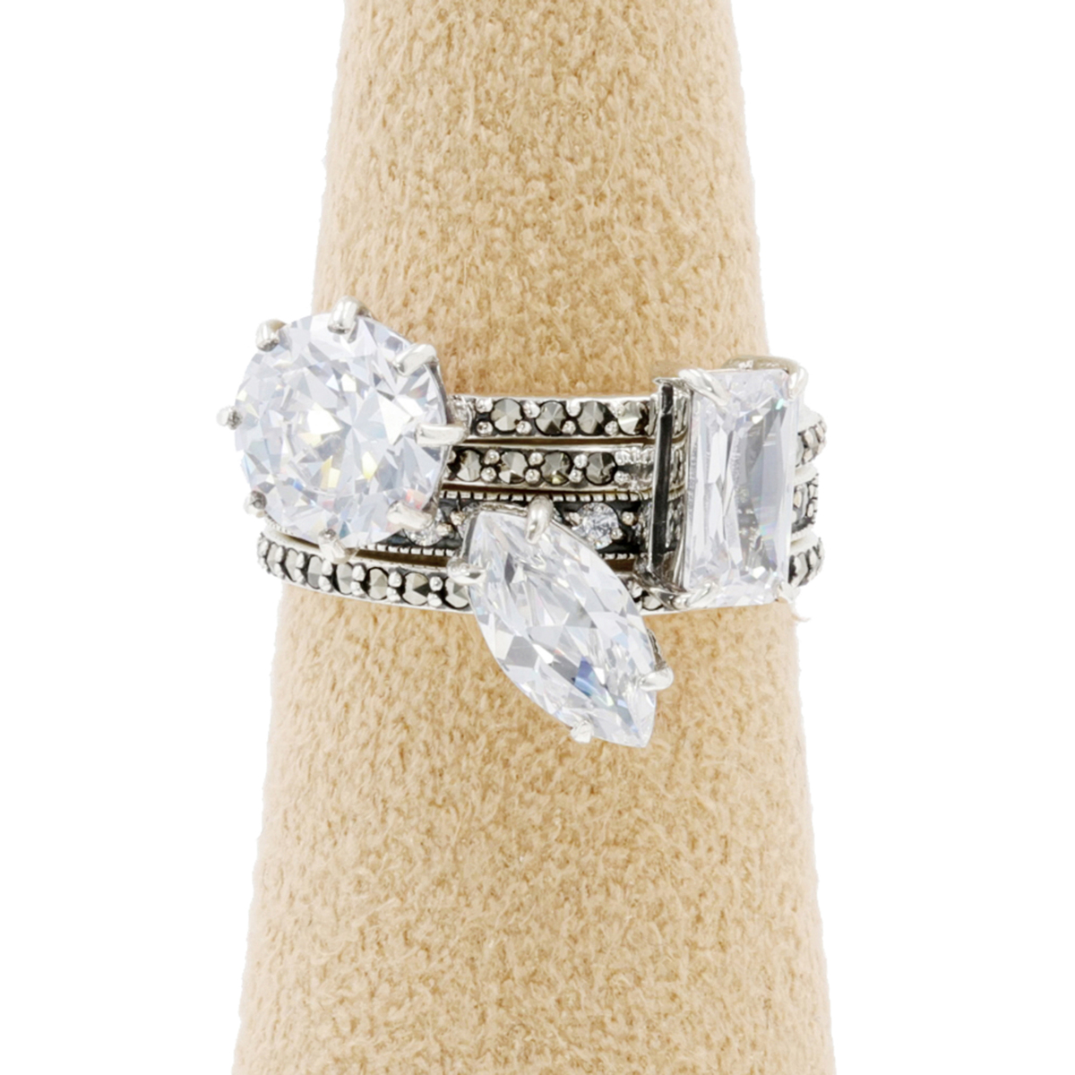 素材:[マルカジット] ローズカット 爪留め/接着 [キュービックジルコニア] マーキスカット 1石、オクタゴンカット 1石 ラウンドカット 14石 爪留め/接着 最大幅(約) 2.0mm マーキス:オクタゴン:8.0mm ラウンド:9.0mm 最小幅(約) 2.0mm マーキス:オクタゴン:ラウンド:1.5mm 総重量(約) 合計:6.6g [地金] シルバー925 [仕上げ] アンティーク仕上げ ■素材の大きさ・形・色合い、製品のサイズは1点1点多少異なります ■専用ケース付 【タイ製】