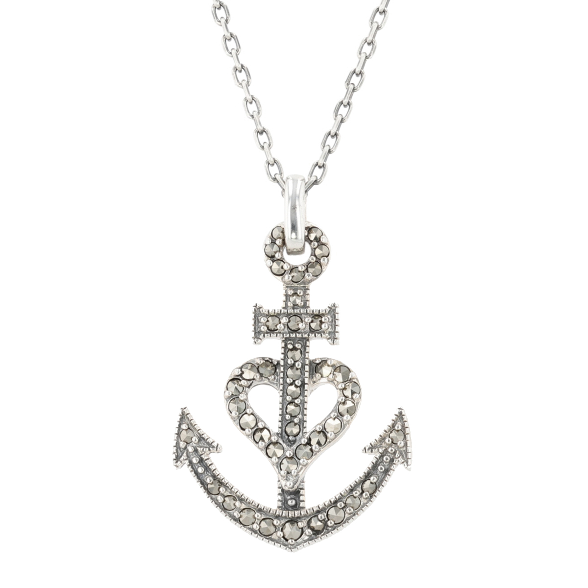 シルバーの洗練された美しさと、マルカジットの繊細な輝きが調和。ハートの曲線とクロスの直線が絶妙なバランスのエレガントな縦長デザインで、お顔周りをシャープに見せます