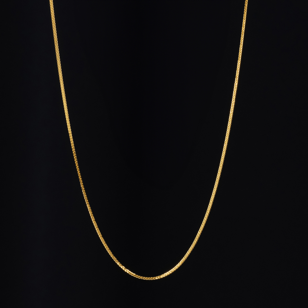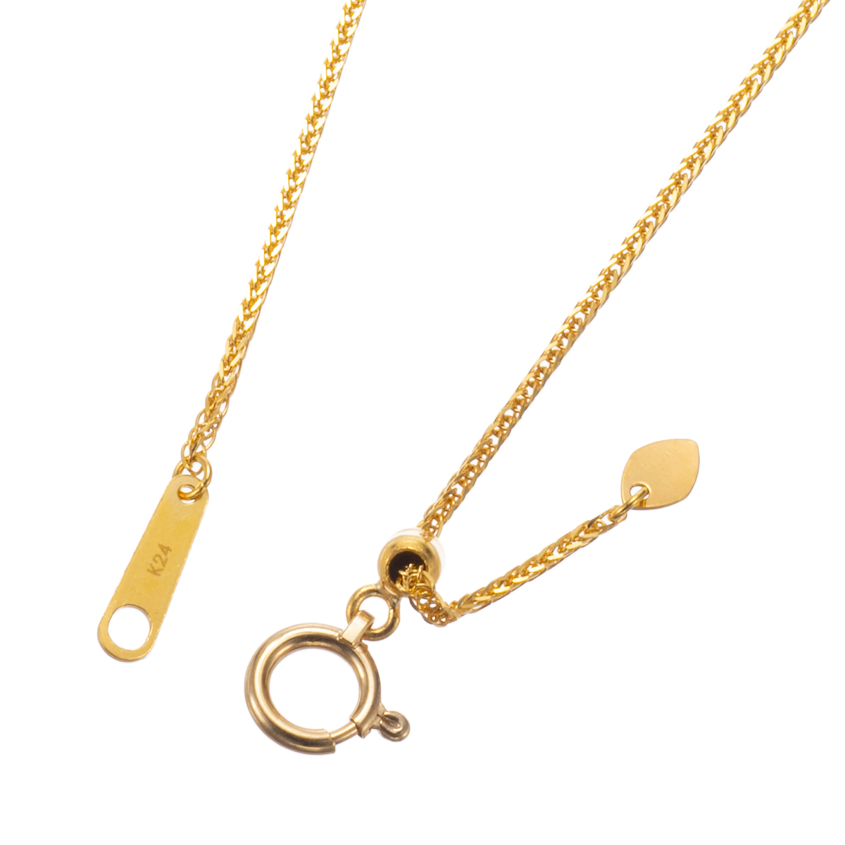 美しいきらめきが存在感を放つスピガチェーンネックレス。イタリア語で麦などの穂を意味するスピガ。国内外で知られているスピガチェーンを純金で仕立てました。スライド式アジャスター付きで、長さを調節してお使いいただけます