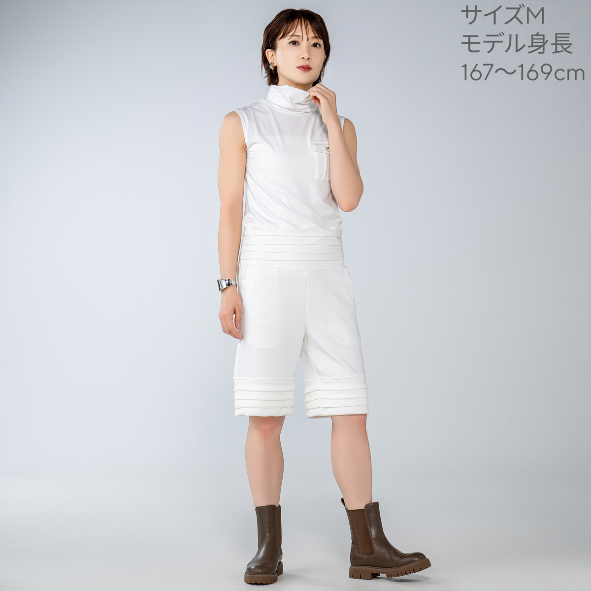 No. 745553 MASAGO 裾タックハイネックスリーブレスプルオーバー