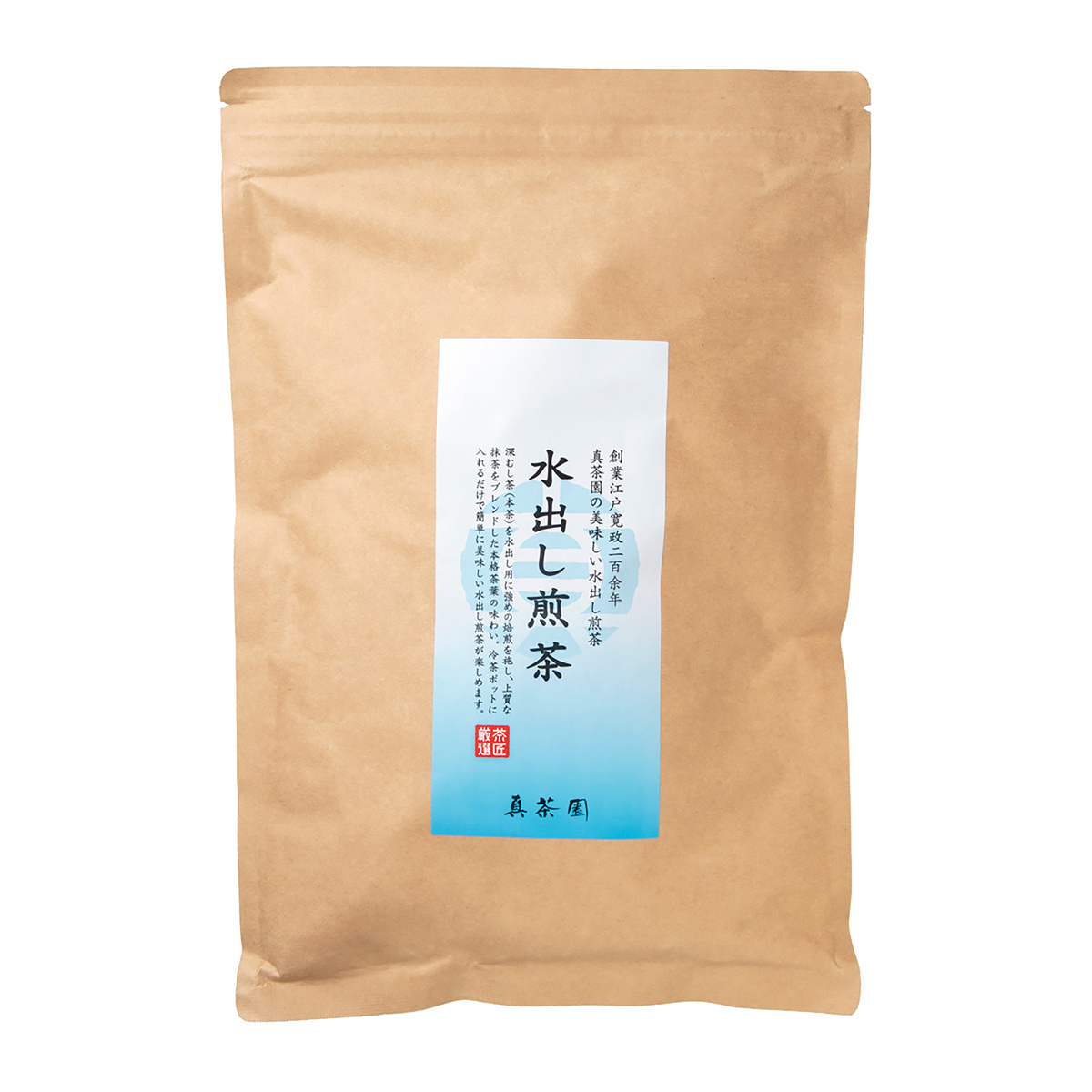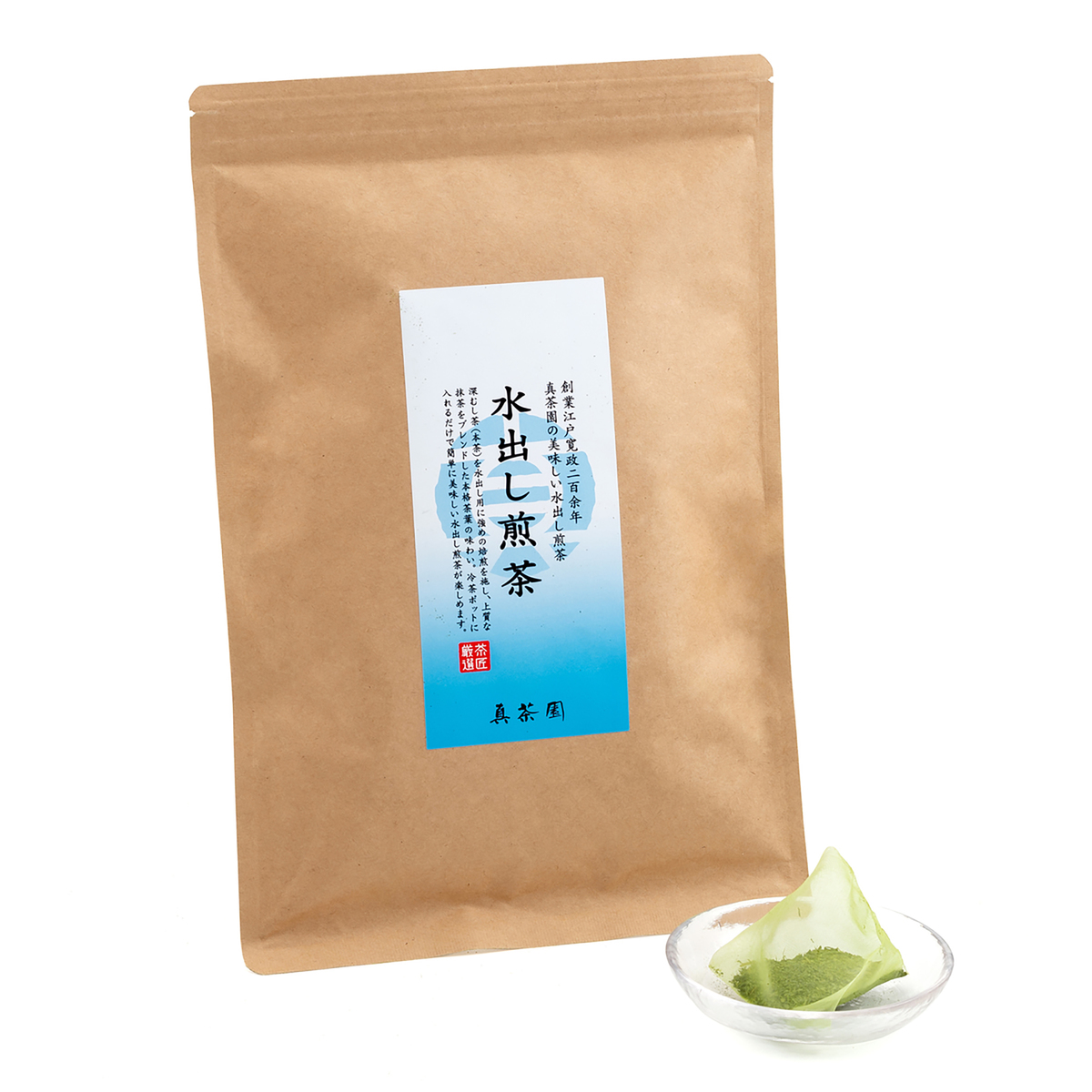水出しタイプの煎茶です。国産の深蒸し茶を使用。香りを引き出す火入れ煎茶では、少量ずつ丹念に施し、さらに強い焙煎(特蒸し)にすることで、水出しでも香りの良いものになりました。また、茶葉だけでなく抹茶をプラスすることで、水出しでも香りがよく、鮮やかな色合いになるよう仕上げています