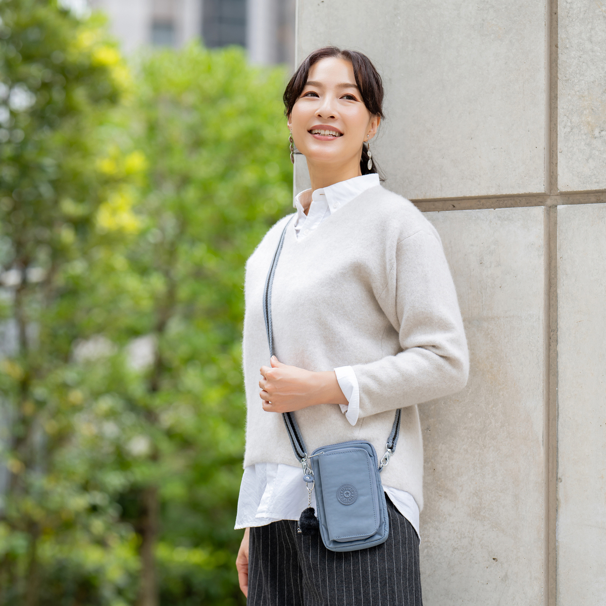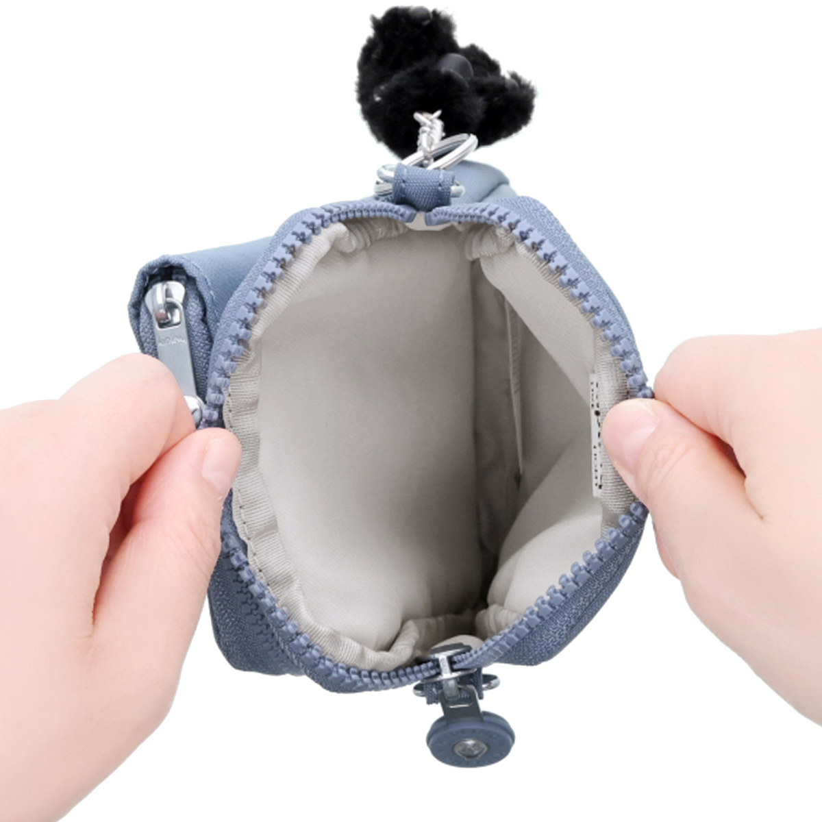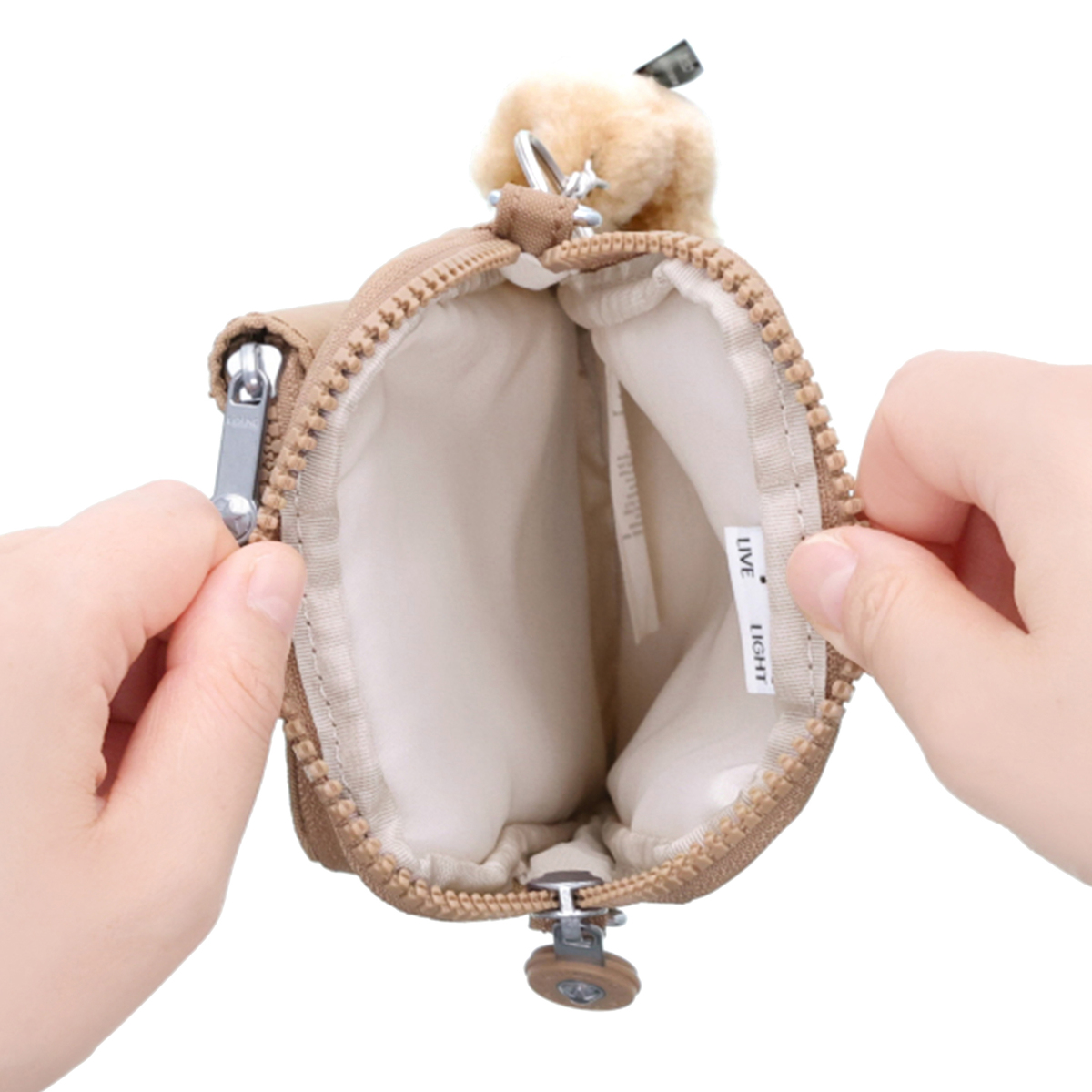 調節・取り外し可能なショルダーストラップ付きで、斜め掛けはもちろん、取り外してポーチとしても活躍。オリジナルデザインのファスナー引手はつかみやすく、バッグのデザインに合わせたマスコットタイプのチャームが個性を引き立てます