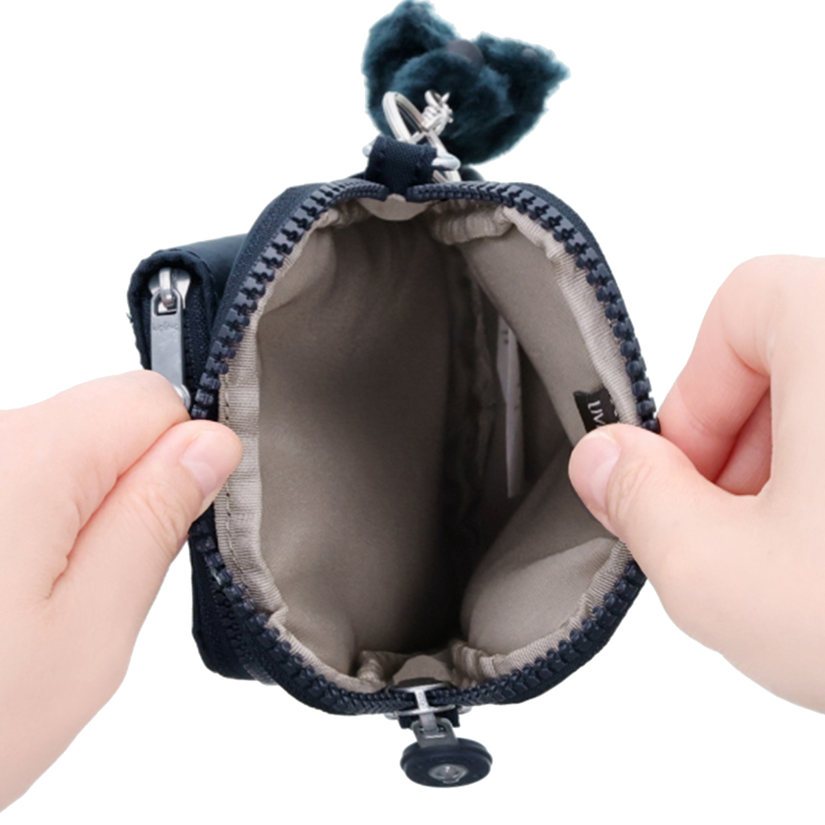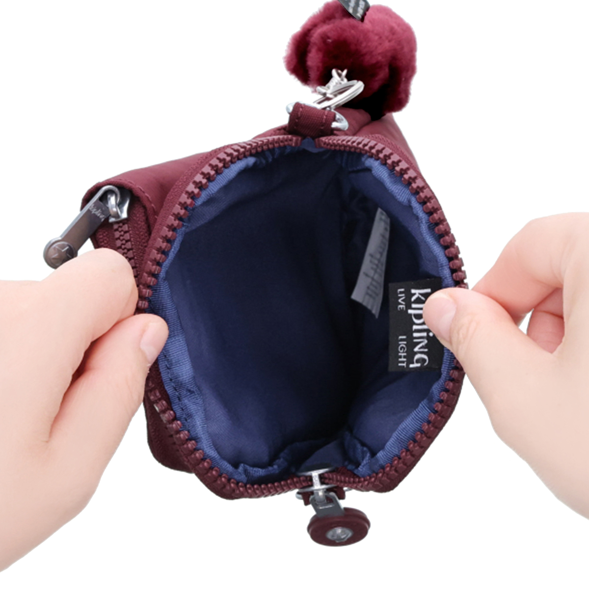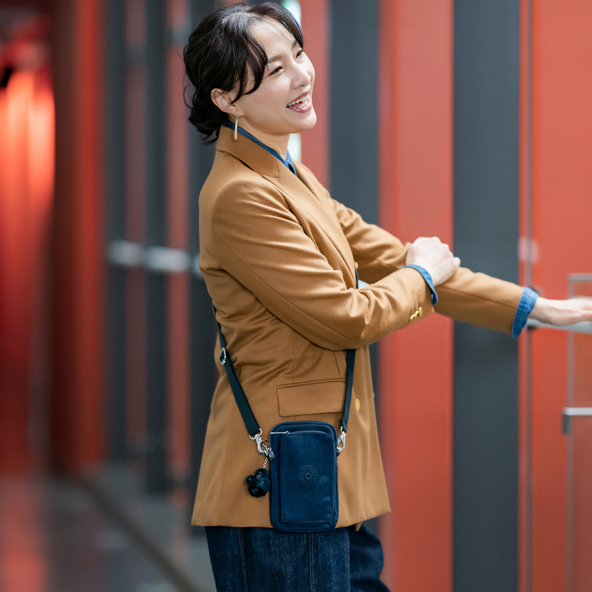 調節・取り外し可能なショルダーストラップ付きで、斜め掛けはもちろん、取り外してポーチとしても活躍。オリジナルデザインのファスナー引手はつかみやすく、バッグのデザインに合わせたマスコットタイプのチャームが個性を引き立てます