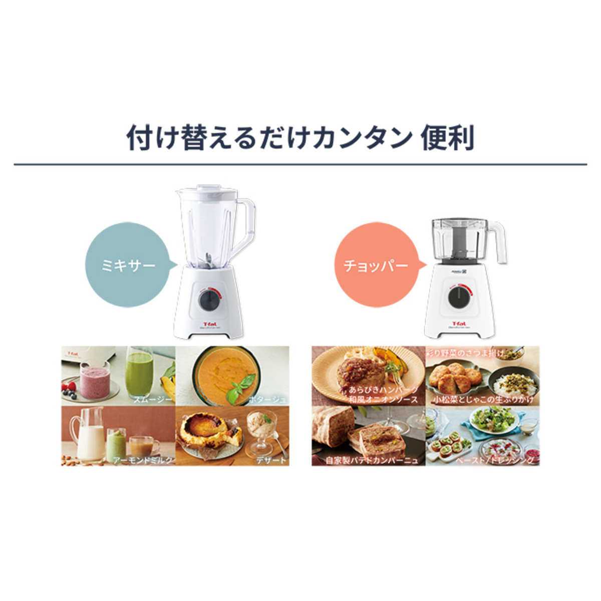 本体はそのまま、上部パーツを交換するだけでミキサーとチョッパーを使い分けることが可能(*3)。コンパクトで日常使いしやすいのも魅力です