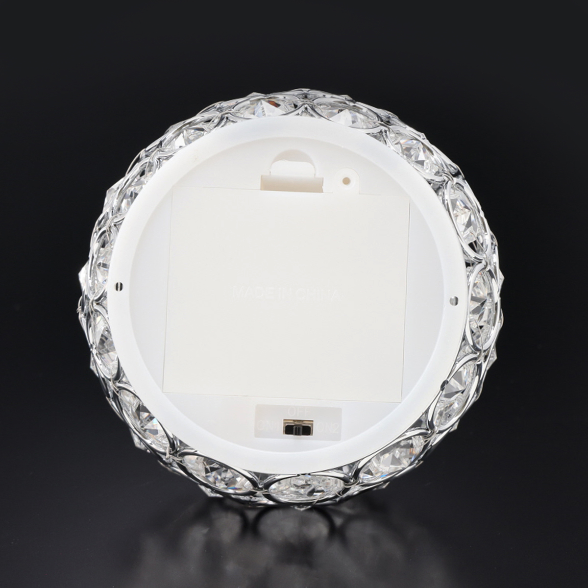 [商品内容] ・本体 ・単3形乾電池 x 3本(モニター用) [サイズ] 約 直径 10×高さ9cm [重量] 約 250 g [材質] ガラス、鉄(表面加工:めっき処理)、合成樹脂 [使用電池] 単3形乾電池×3 [使用方法] 1. 本体を逆さまにして底面を向けます 2. 電池ケースのフタを開けて、付属の単3形乾電池3本を電池ケースにセットします。その際、電池の電極を正しい位置に合わせてください ※付属の電池はモニター用です。そのため、通常より早く電池寿命に達する場合があります 3. 電池ケースのフタを閉じます 4. 電源スイッチをON1 または ON2に入れます ・ON1:白色LEDライトが点灯します ・ON2:LEDライトが様々な色に変化します 5. LEDを消灯するには、スイッチを OFF に戻します <自動タイマー機能> スイッチを入れてから5時間点灯し自動的に消灯します。消灯後19時間後に再び点灯します。再点灯から5時間後に消灯。19時間後に再び点灯。この動作を繰り返します ■取り扱い説明を十分にご確認の上、ご使用下さい 【中国製】 [注意事項] ※本品は玩具ではなく装飾を目的にしたものです。乳幼児の手の届かないところに置いてください ※本品に火を近付けないでください。また、高温の熱源から離れた場所に置いてください ※本品は室内用です。屋外では使用しないでください ※改造、分解は行わないでください。故障の原因となります ※床に置く装飾はお控えください。本品を踏みつけて怪我をする恐れがあります ※壁にぶつける、固い物で叩く、高い所から落とす等、本品に強い衝撃を与えないでください。本品が破損する恐れがあります ※本体のガラス製の装飾にヒビ、欠け、割れ等がある場合はご使用を中止してください。使用を継続すると破損したガラスで怪我をする恐れがあります ※一度使用した電池(使用済み電池)と新品の電池を併用しないでください ※種類の異なる電池(マンガン電池とアルカリ電池、ニッケル水素充電池とニッカド充電池など)を併用しないでください ※破棄する際は、各自治体の指示に従い分別してください ※汚れた場合は乾いた布でやさしく拭き取ってください ※ベンジンやシンナーなどの溶剤や研磨剤を含む洗剤は使用しないでください ※本品を長期間使用しない場合は、電池を外してください ※直射日光を避け、涼しい場所で保管してください