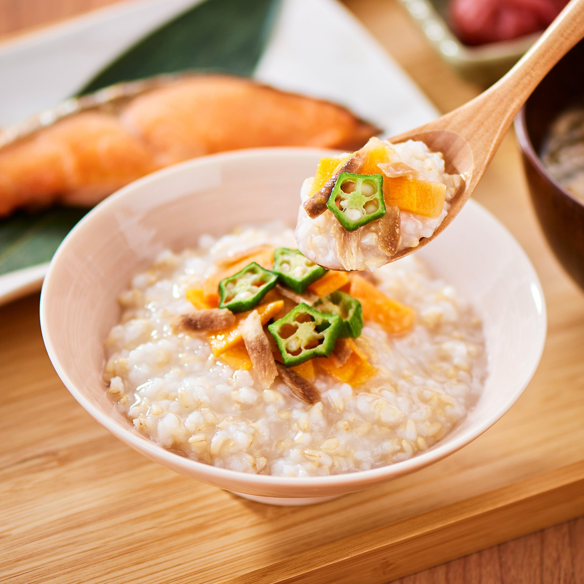 日常の食事として美味しく食べてほしいという思いが詰まったこだわりのおかゆ。温めても冷たいままでもおいしく、シンプルな味わいでアレンジもしやすく、どんなおかずにもマッチ。ローリングストックにもおすすめです